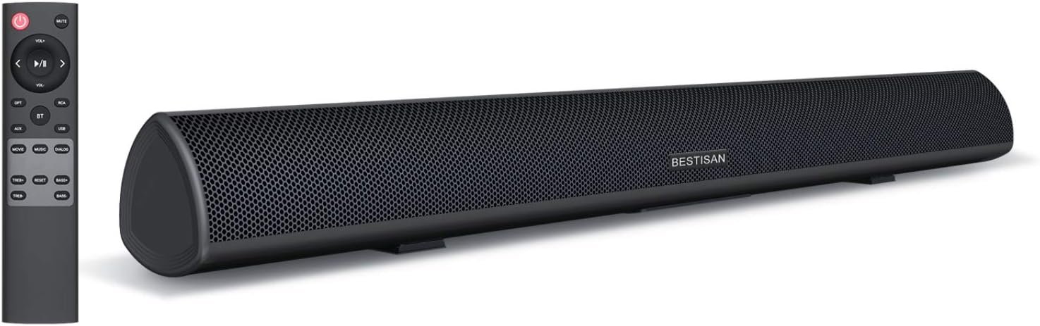 Upgraded Version: High-sensitivity remote control displays the different modes by means of different colored LED lights. Deep bass, improved power (Up to 80W). Advanced built-in Subwoofer bring powerful bass for all your movies, music and TV shows. Enjoy expansive audio and crystal-clear sound. (Fit for 32Inch–50Inch Smart TV).