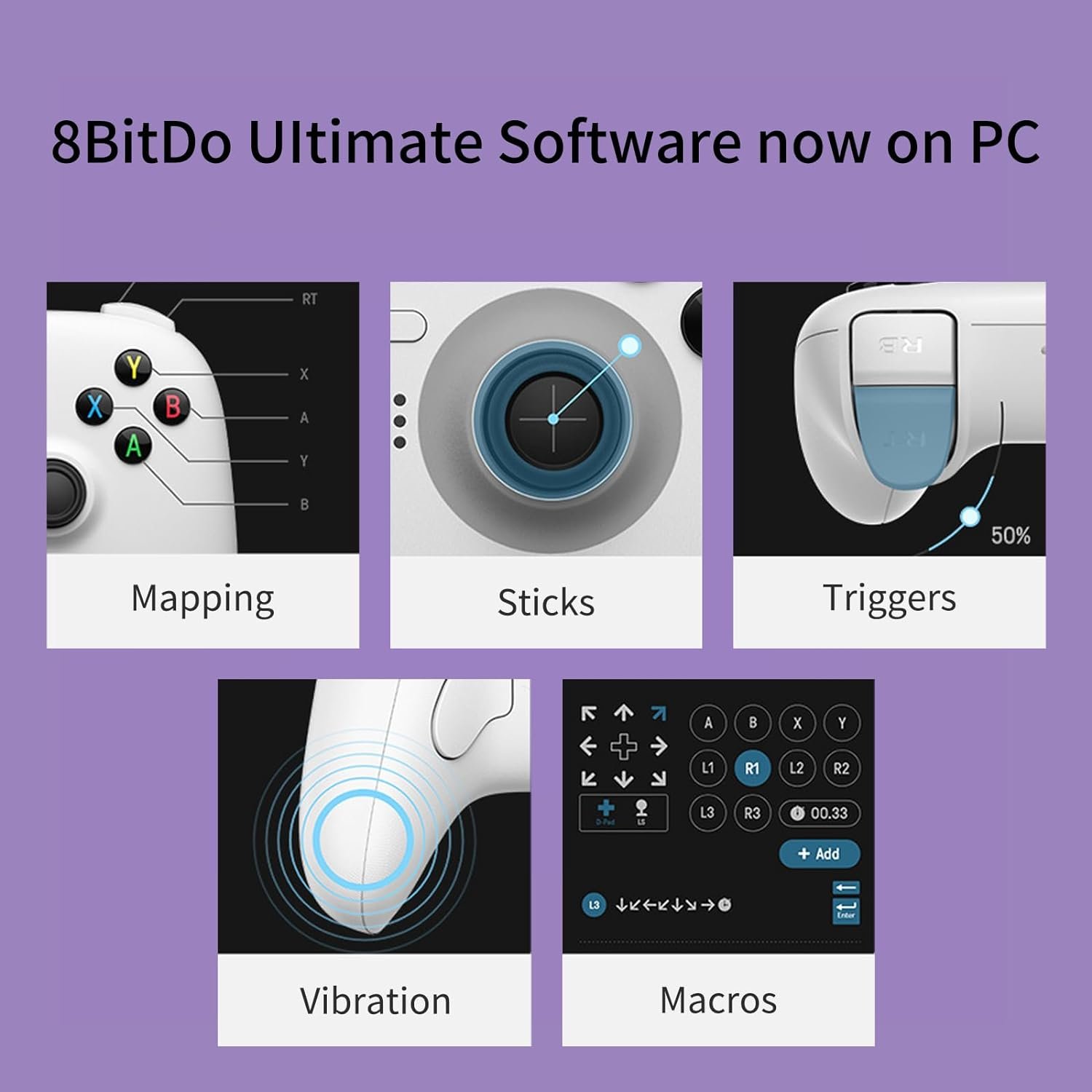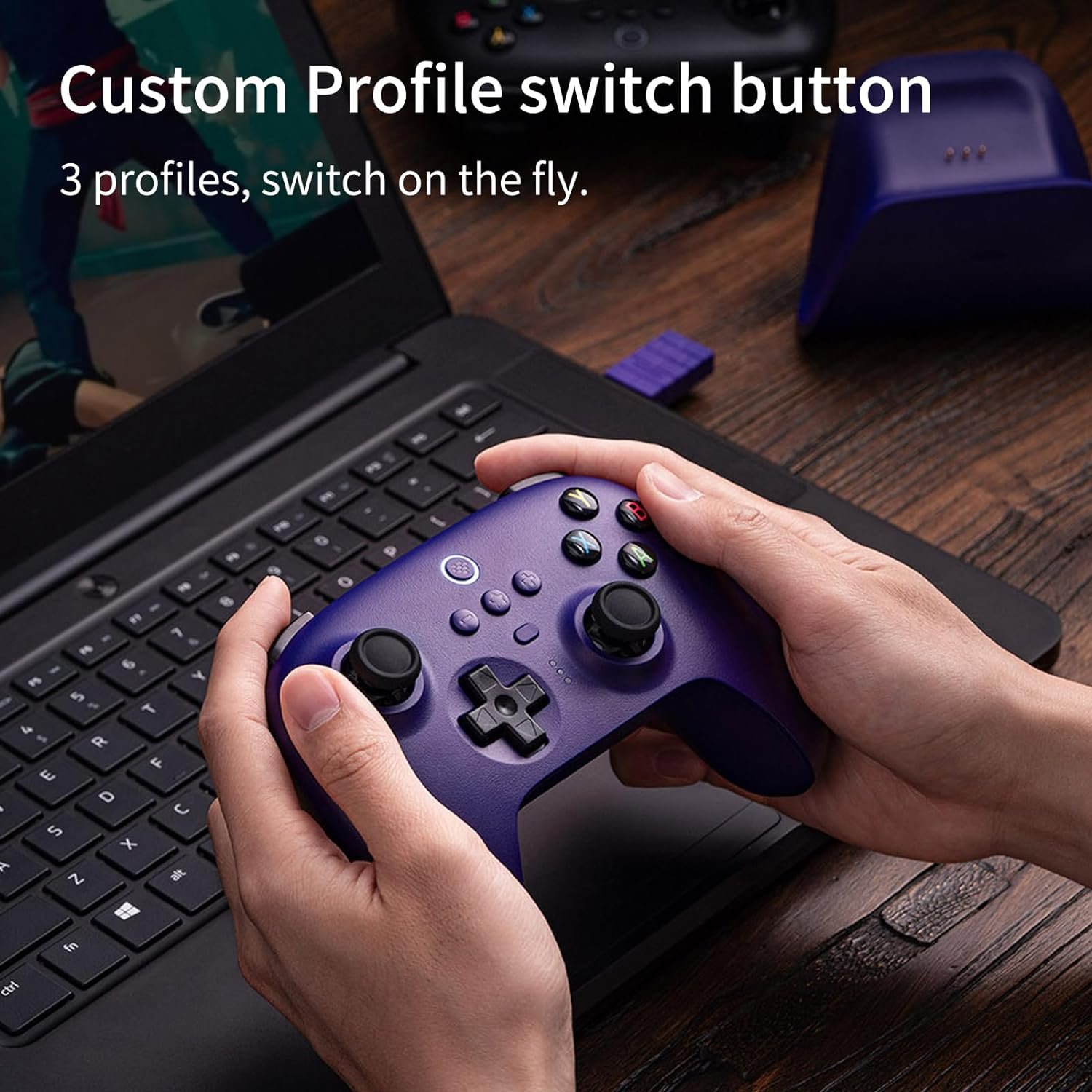 Take control of the game with two pro-level back buttons. Assign any button function or macro with 8BitDo Ultimate Software. Additionally, you can customize up to 3 profiles with the custom profile switch button.
