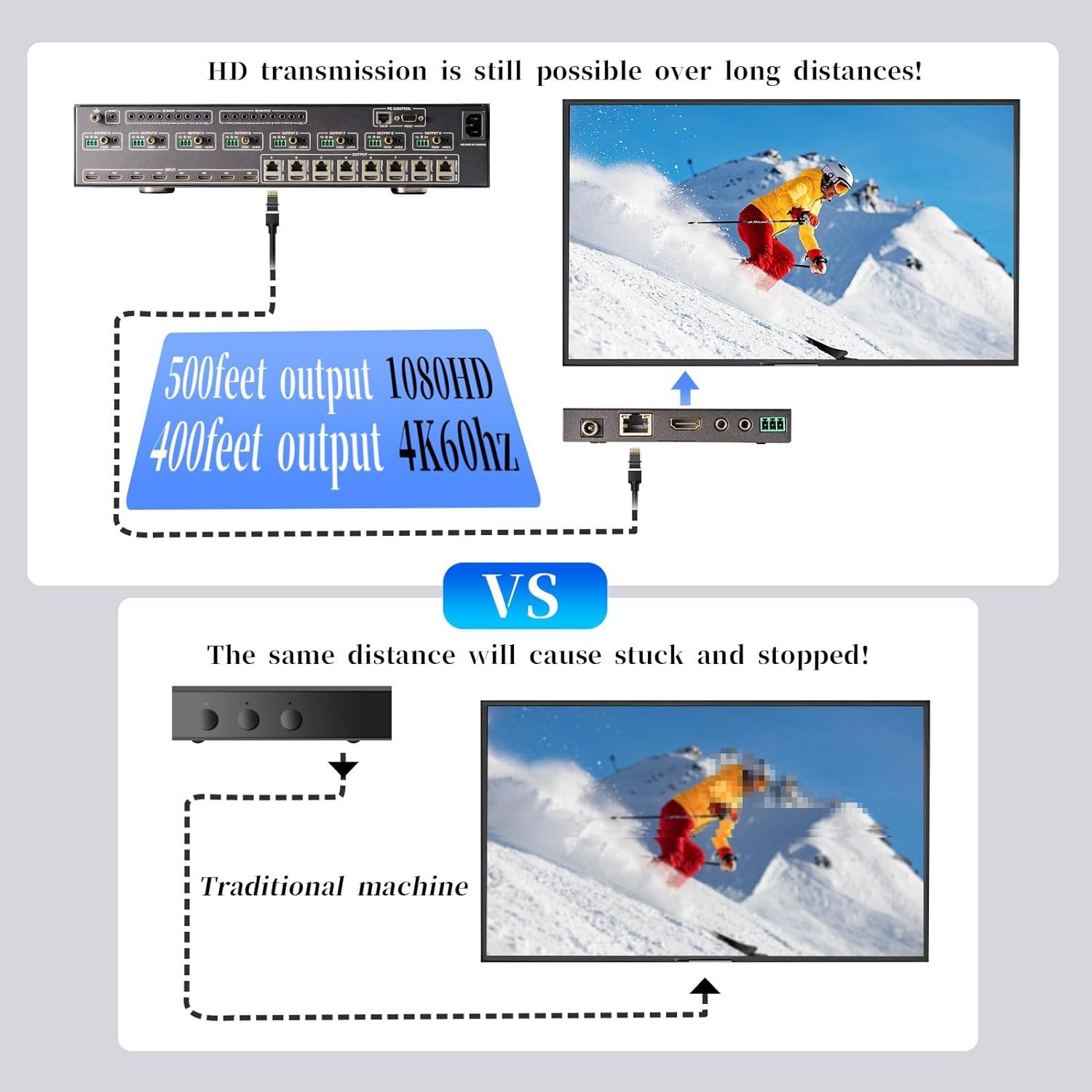 ●Transmit up to 70m under 1080p, 40m under 4K@60HZ