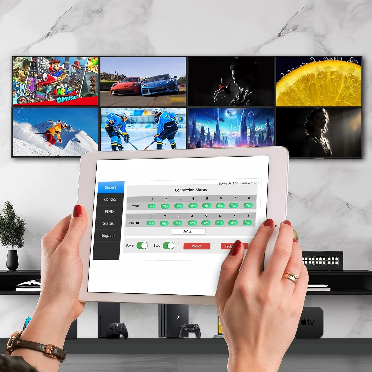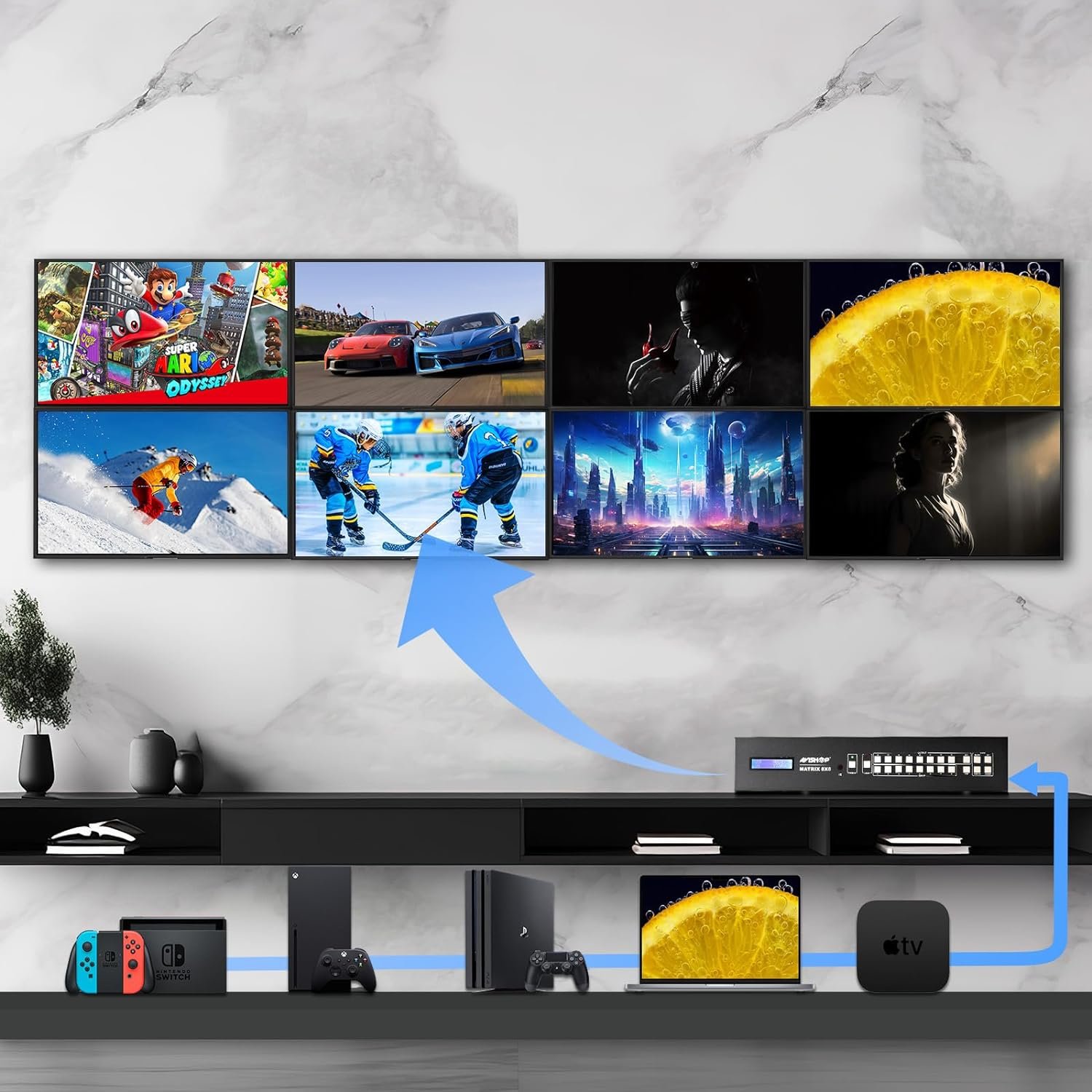 ●Any one of the 8 HDMI Sources to any one of the 8 HDMI Displays