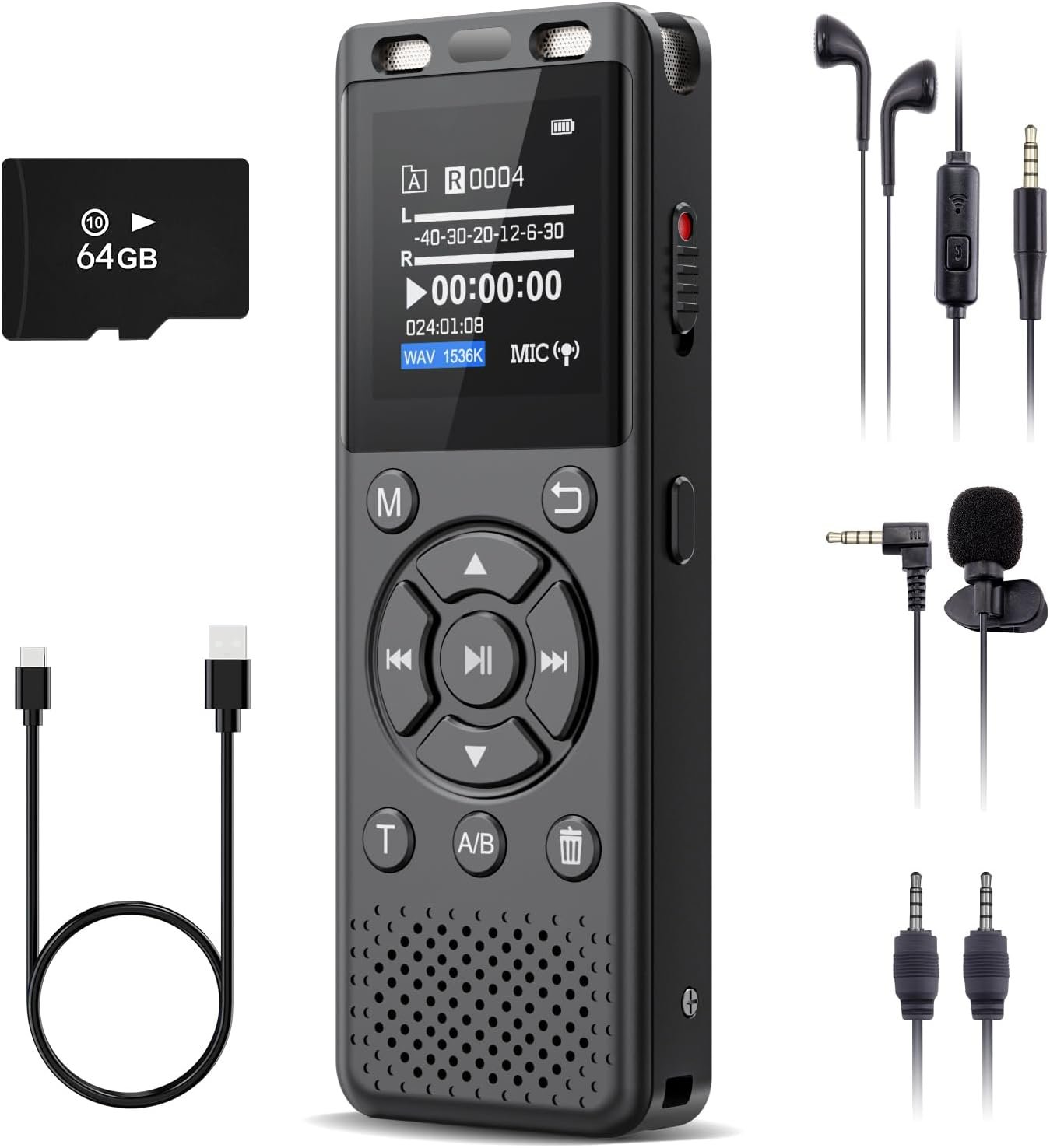 【96GB Memory and High Capacity Battery】: This recorder comes with a built-in 32GB memory and includes a complimentary 64GB TF card, totally96GB. Storage of up to 7,000 hours of recordings. Additionally, it features a high-capacity 900mAh battery, capable of continuous recording for up to 48 hours (MP3 format, at 32kbps). It is a professional and reliable recorder for students, journalists, and others in various situations, such as lectures, interviews, meetings, music creation, and more