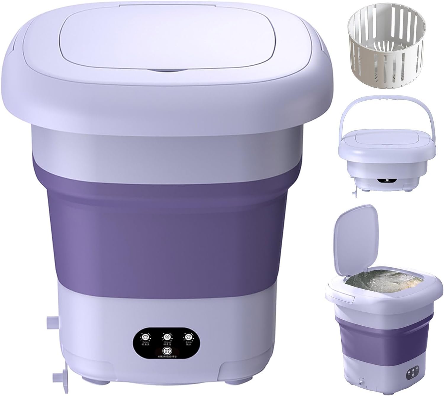 Folding Design Portable Washer : The upgrade capacity style portable washing machine provides a collapsible drain basket,adopts a foldable design,press down folding, lightweight, easy to move, easy to store in a small space.Compact and easy to carry, it is an ideal choice for your apartment, dormitory, RV, travel or camping.