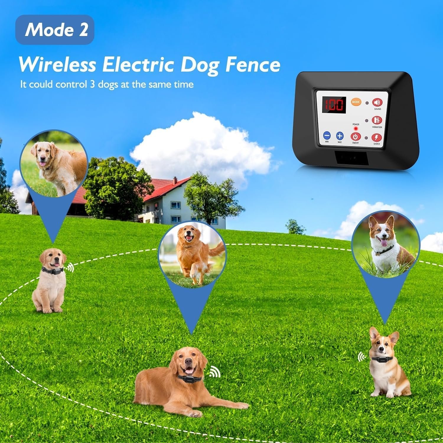 【Upgraded 2 in 1 Function 】This is our new update wireless dog fence. Compared with old version, we add one more function – remote dog training collar. Adopted the newest technology, 2.4GHz signal source which provides much more stable and accurate signal transmission. Help to train your pet and shape good habits safety.