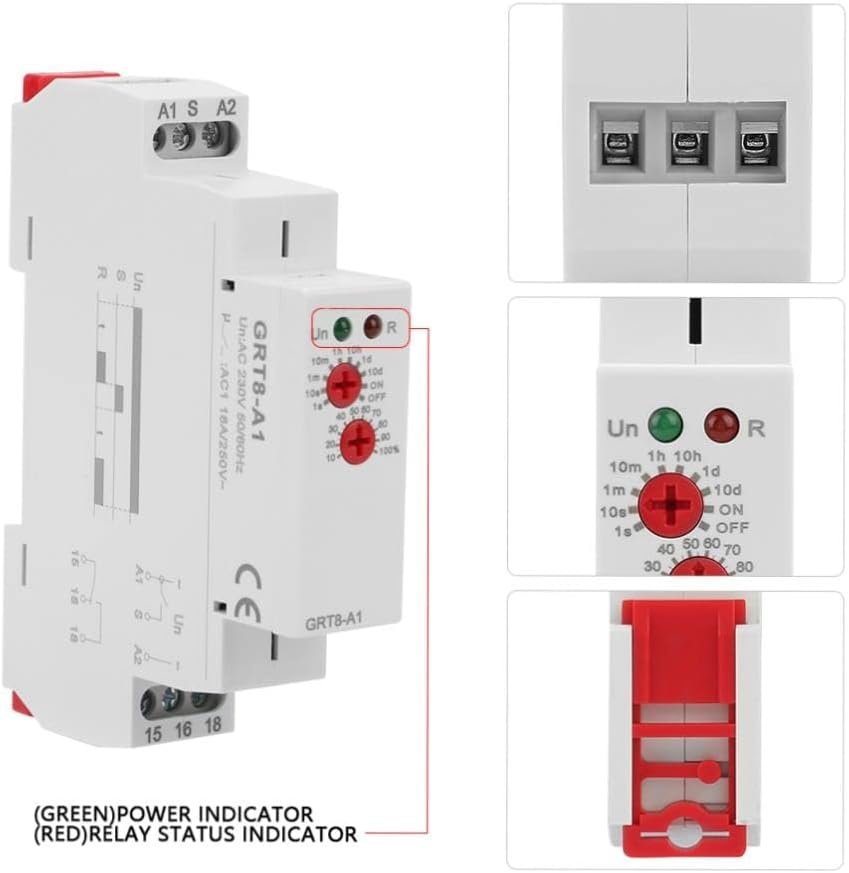 Flexible Delay Range: The GRT8-A1 Power On Delay Relay offers a wide delay range of 0. – 10 days, which can be easily set by the panel knob for precise timing.