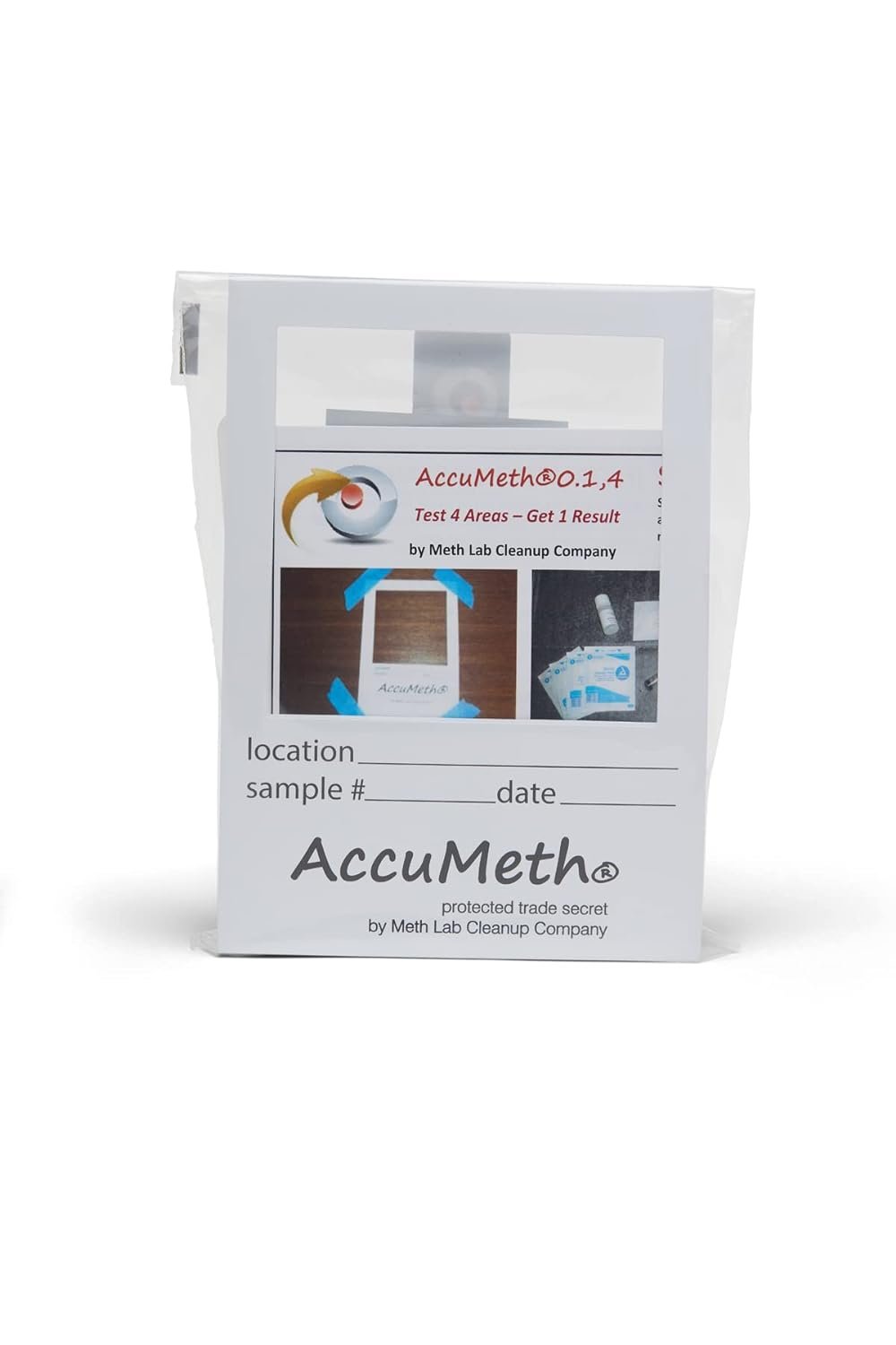 Buy AccuMeth0.1,4 (test 4 areas, get 1 avereaged result) instant meth kit to test interior surfaces for methamphetamine use or production contamination to the legal standard of 0.1 ug/100cm2; Get test results within minutes of taking the sample; AccuMeth meth residue test kits utilize an ultra-sensitive cassette and buffer to ensure accuracy; Compare test results to a Line Intensity Card with a measured gradient to the legal standard