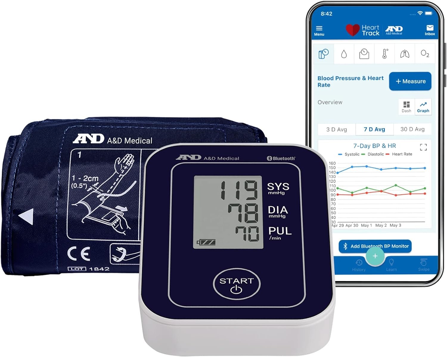 DIGITAL BLOOD PRESSURE MONITOR: The FREE A&D Heart Track app tracks your history by syncing to your supported Android and Apple (iOS) devices. Wirelessy connects and syncs your bp measurements directly to supported Android and Apple phones