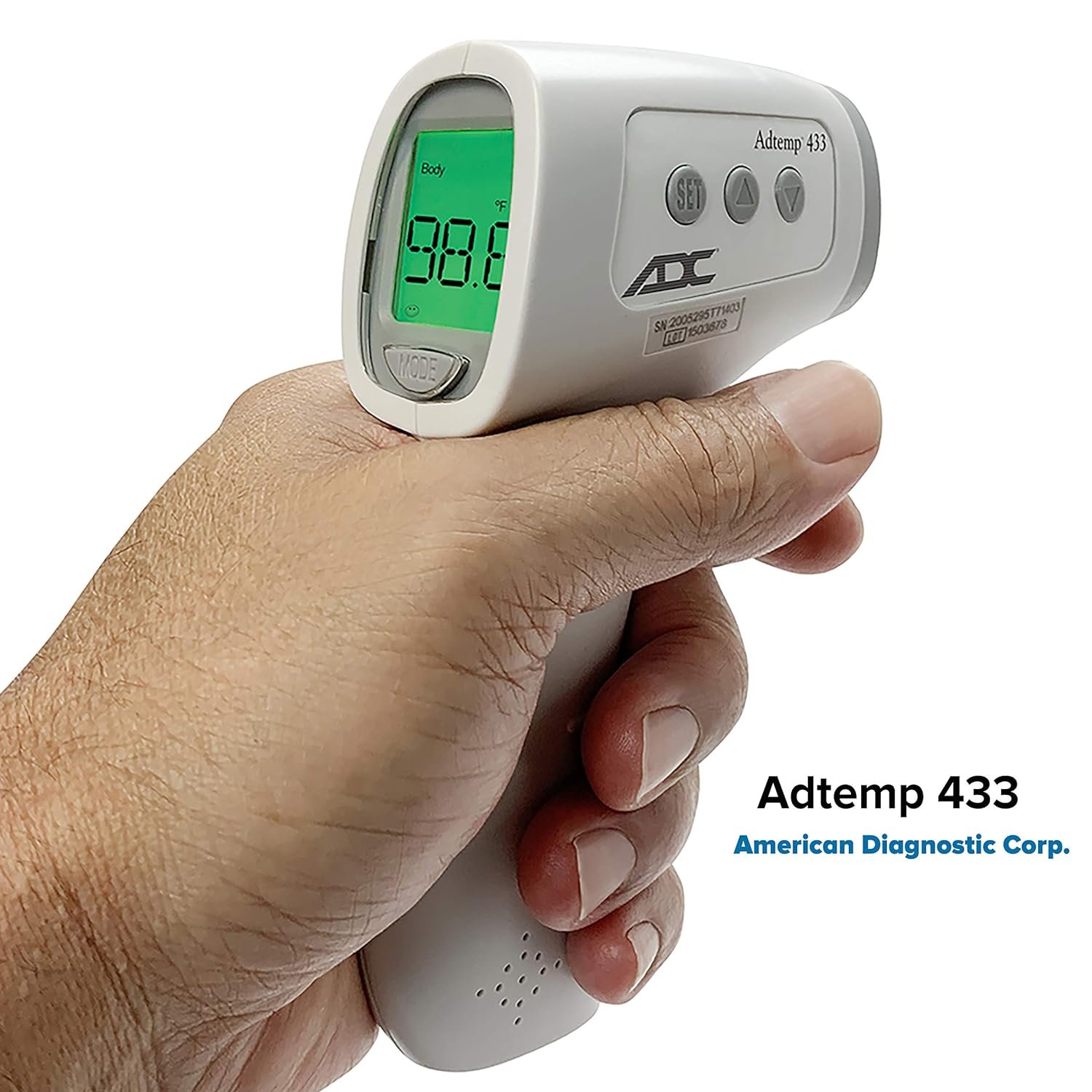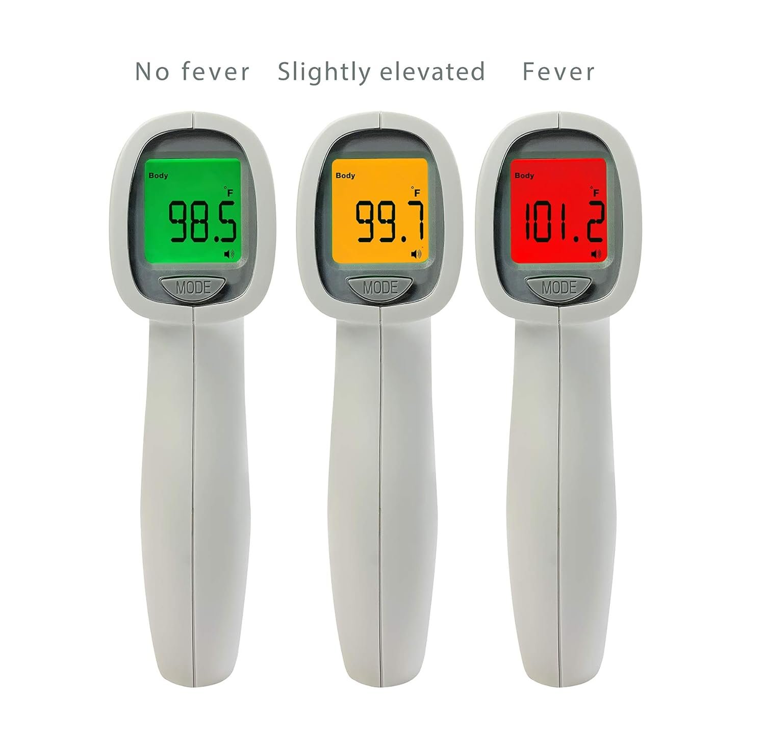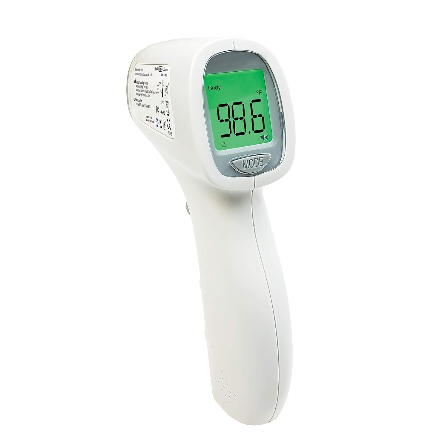 Trigger-style design for use at the forehead with no skin contact required; minimizes risk of cross contamination