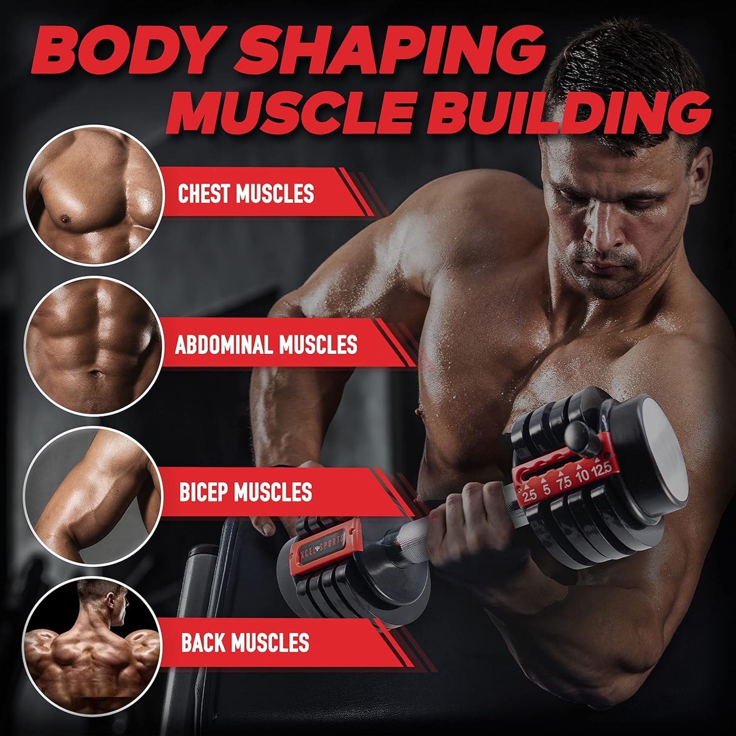 Adjustable weight selection with pull and glide design, from 2.5 to 12.5 lbs
