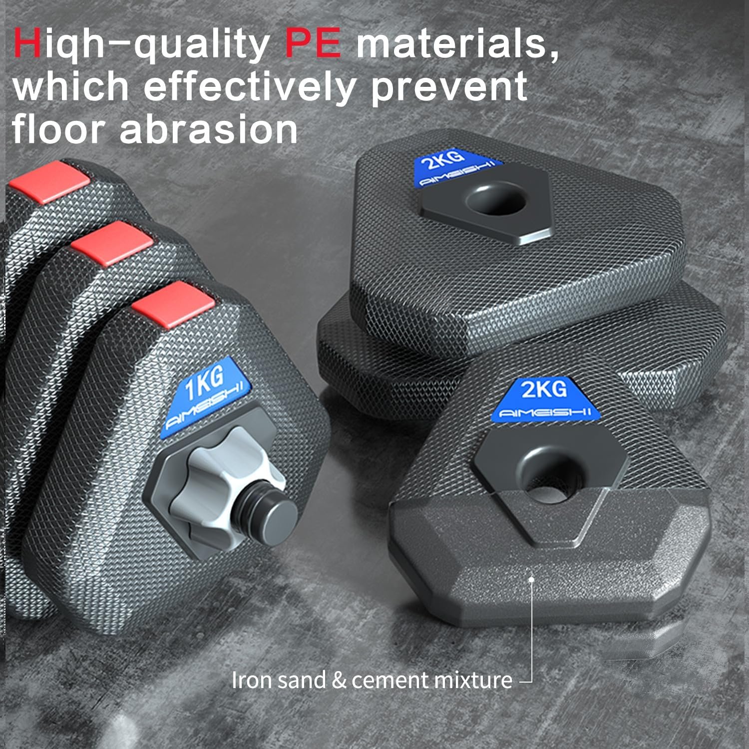 Durable Construction with Eco-friendly PE Plastic: The outer layer is made of environmentally friendly PE plastic, while the inner core consists of a mixture of sand and cast iron for long-lasting durability without damaging the floor.