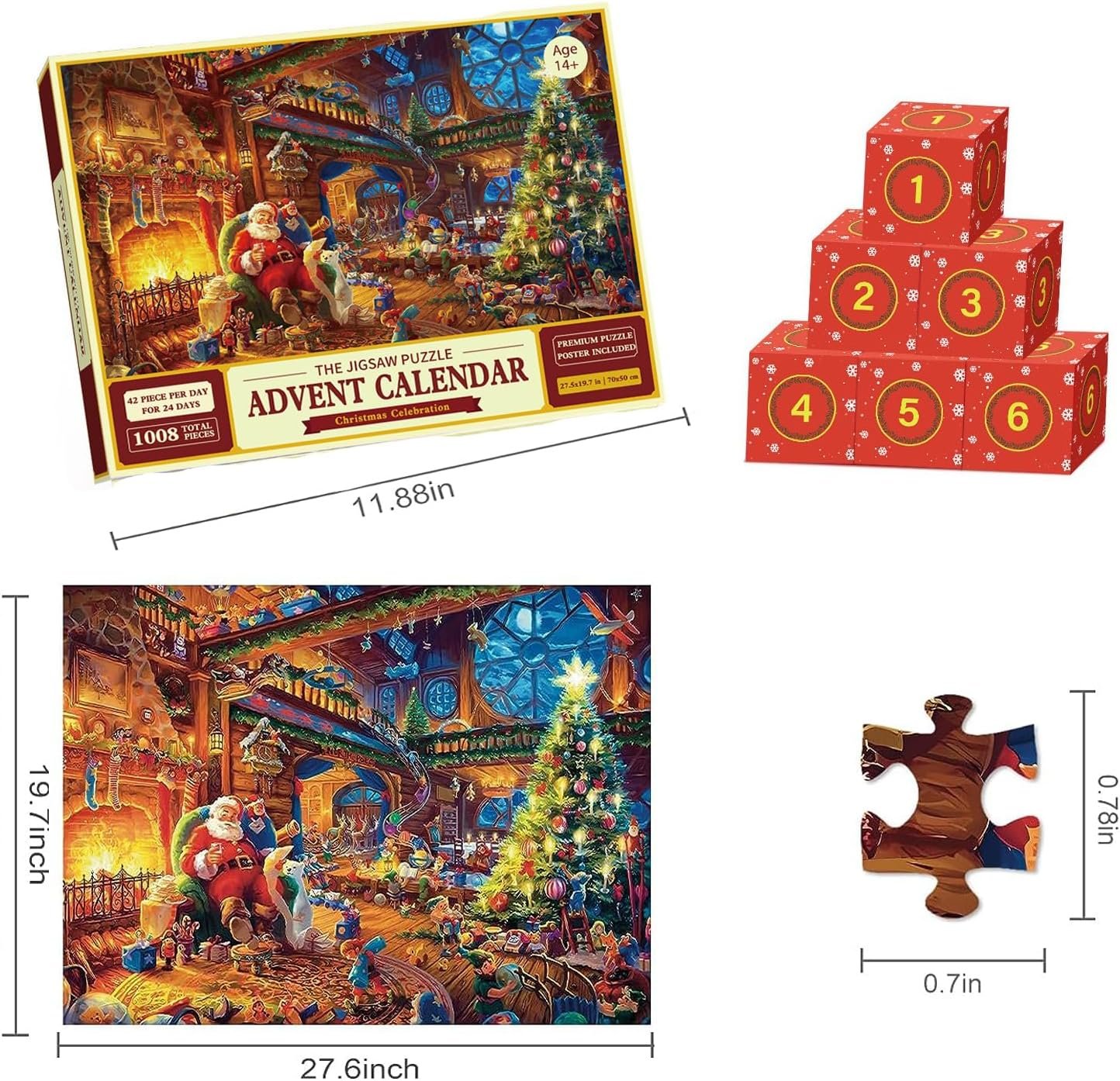 🧩High Quality Christmas Advent Calendar-The advent calendar Christma Puzzle is made of recycled cardboard finish, not easy to bend nor broken,High definition print and color remains freshness after long time. Each puzzle piece is precision cutting to ensure a tight fit between pieces, a burr-free edge, bringing you the best experience.