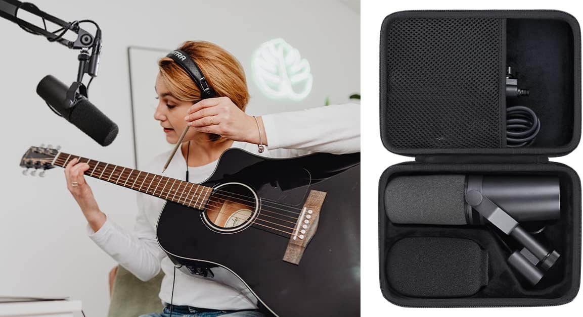 This case is specially designed for Shure SM7B/MV7 usb microphone, this case is sturdy, shockproof and waterproof to protect your beloved Shure motiv SM7B/MV7 usb microphone. The SM7B/MV7 microphone case can hold your Shure SM7B/MV7 digital condenser microphone well and effectively cushion the shock caused by accidental drops, keeping your device in good condition.You can take your SM7B/MV7 Shure mic to travel at any time with confidence, it can be easily put into your backpack, suitcase, or placed anywhere, and you will never have to worry about your Shure SM7B/MV7 usb mic being damaged. For a perfect fit, the classic zipper design makes it easy to open and close.The hard case is suitable to replace the microfono shure SM7B/MV7, the interior is made of high-quality velvet, and the soft inner structure ensures the protection of the Shure SM7B/MV7 microphone. This SM7B/MV7 mic case comes with a comfortable hand strap for easy access when traveling or for storage, and the inner mesh pocket not only secures your SM7B/MV7 Shure microphone but also stores your accessories.The hard case is small but very strong and keeps your Shure microphone wireless SM7B/MV7 safe and convenient. Protect your Shure SM7B/MV7 in various harsh conditions with this portable shure microphone SM7B/MV7 case.Note: Only the case is sold, the Shure SM7B/MV7 digital condenser microphone and accessories are not included.