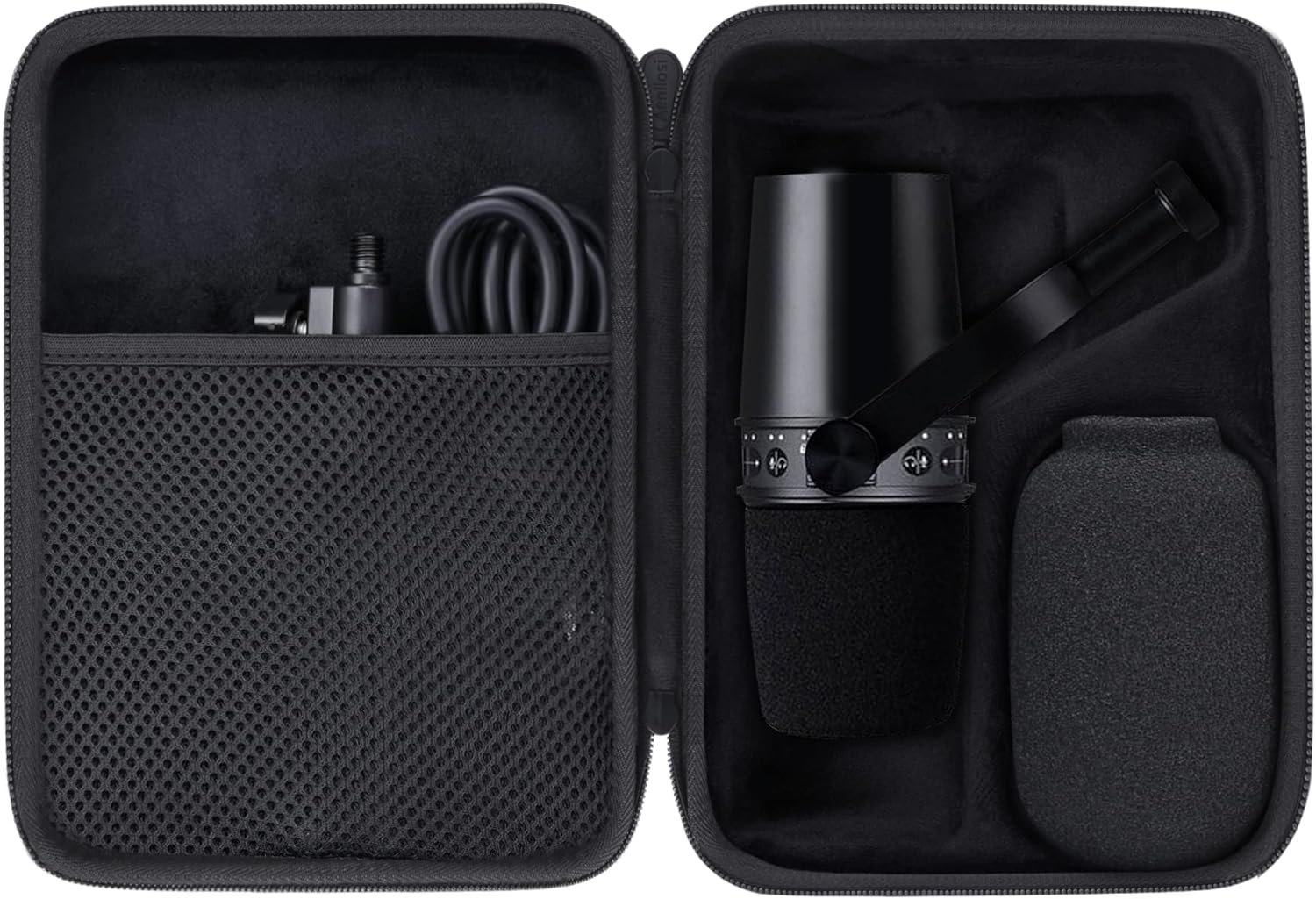 The hard case is suitable to replace the microfono shure SM7B/MV7, the interior is made of high-quality velvet, and the soft inner structure ensures the protection of the Shure SM7B/MV7 microphone. This SM7B/MV7 mic case comes with a comfortable hand strap for easy access when traveling or for storage, and the inner mesh pocket not only secures your SM7B/MV7 Shure microphone but also stores your accessories.