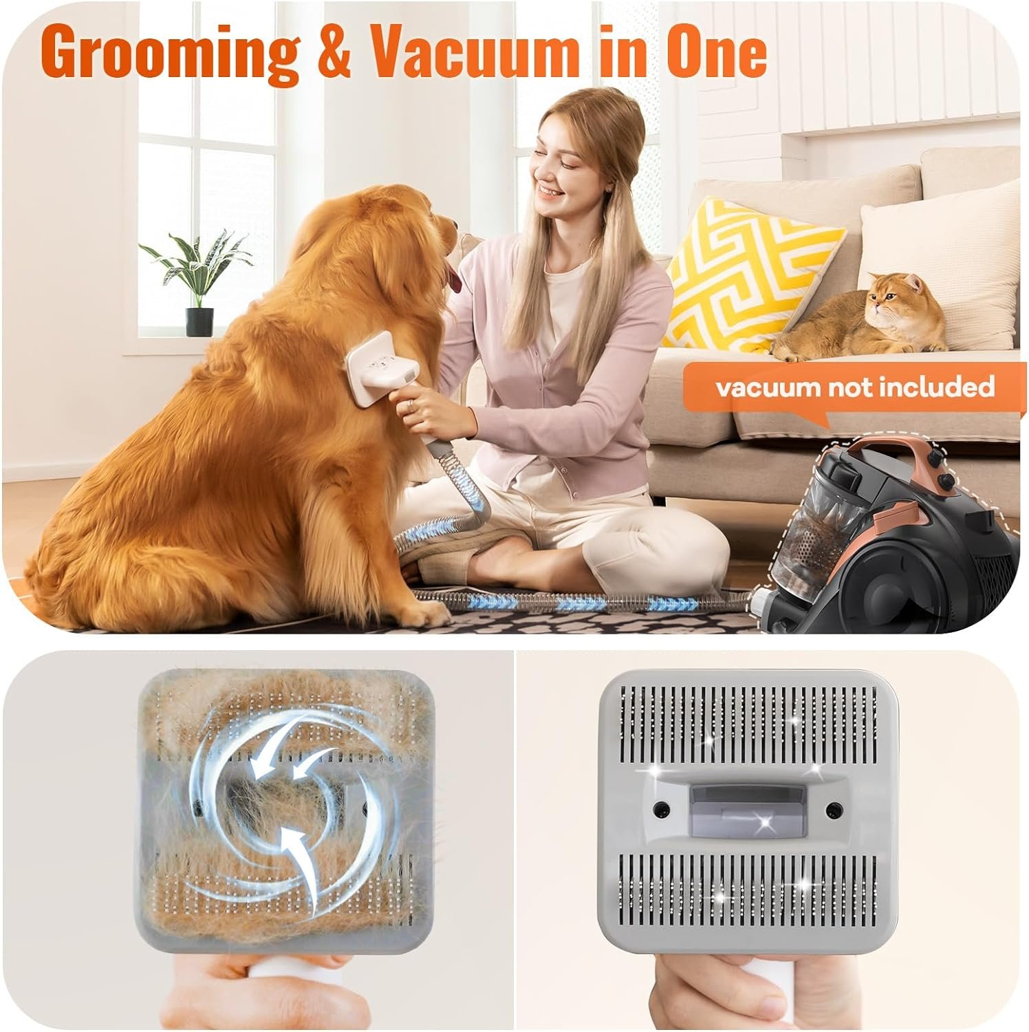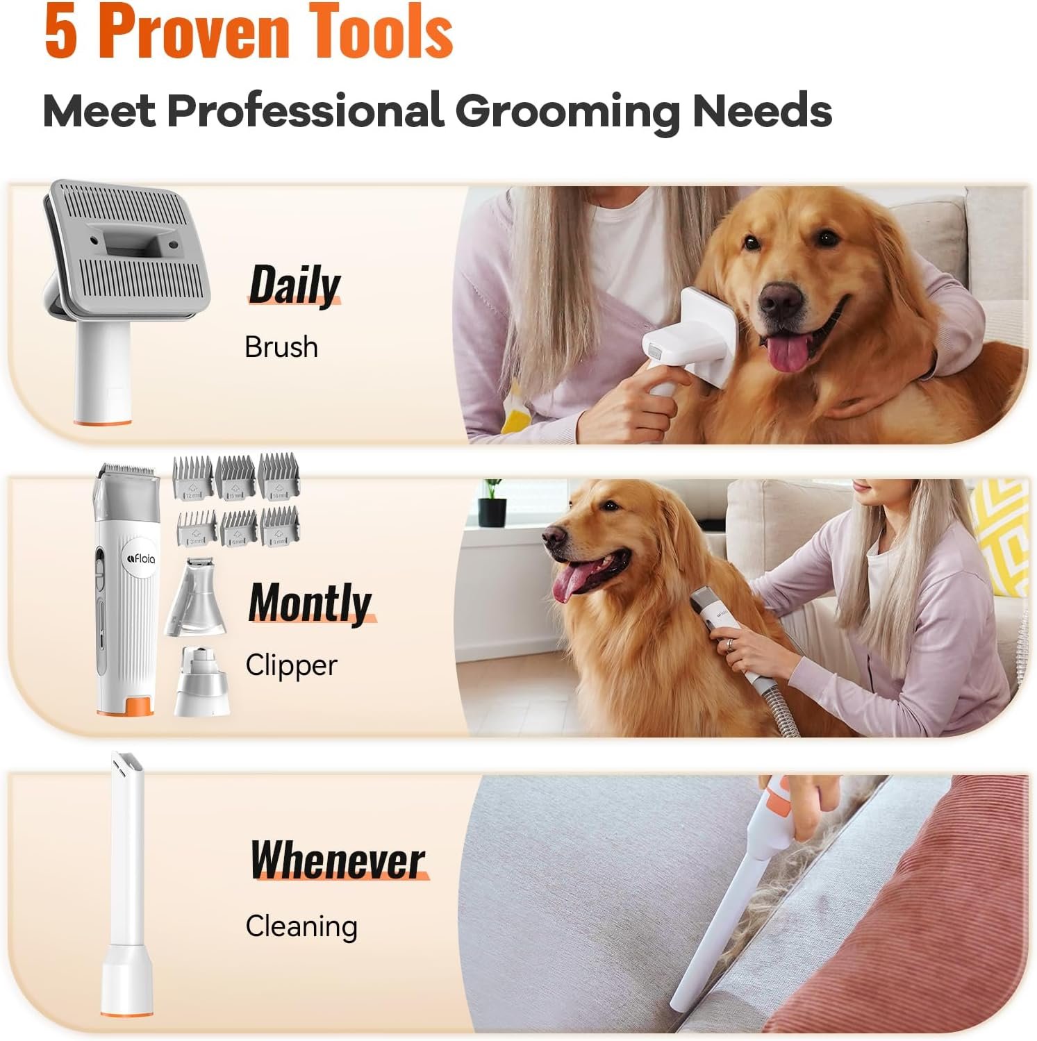 Afloia Pet Grooming Vacuum Attachments, Dog Hair Vacuum Groomer, 5 in 1 Dog Grooming Kit with Clippers Nail Grinder Shedding Brush for Vacuum Cleaners Like Dyson, Shark, Bissell, Eureka, etc