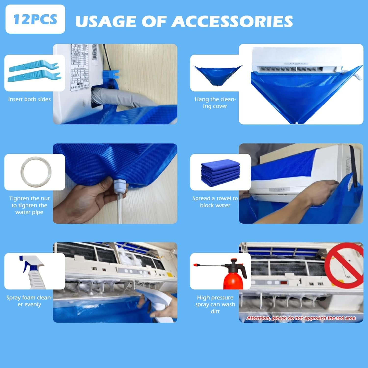 High-quality material: Air conditioner cleaning kit is made of high-quality pvc fabric, super waterproof sealing, cutter scratching, wear-resistant and folding-resistant, one-piece wall guard, more durable, it can keep the surrounding environment dry and safe.Air Conditioner Cleaning Kit, Mini Split Cleaning Kit, Minisplit Cleaning Kit, Wall Mounted Air Conditioner, Mini Split Ac Cover For Outside Unit