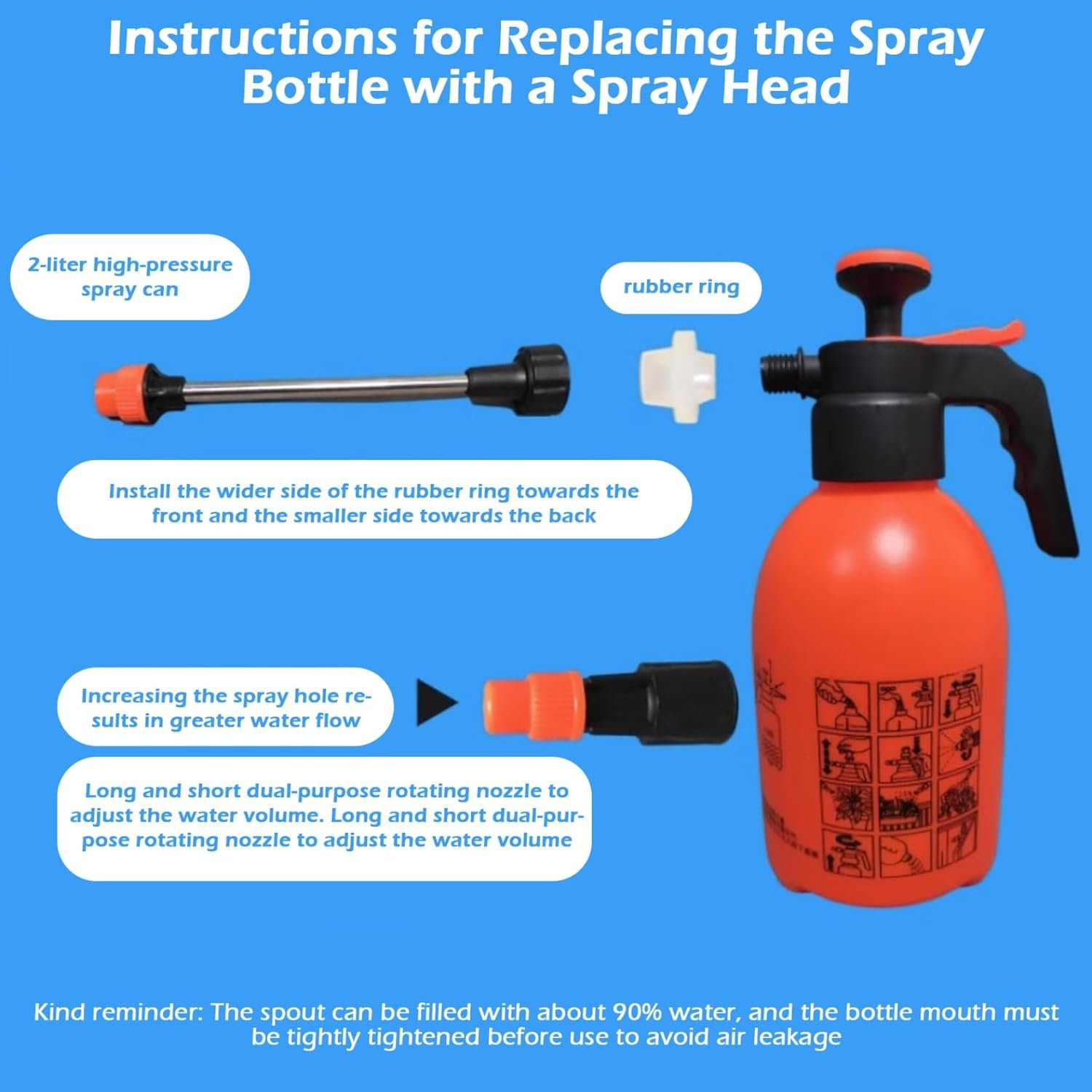 Warm tips: the spray bottle can be filled with about 90% of the water can be bottle mouth must be tightened before use to avoid leakage;