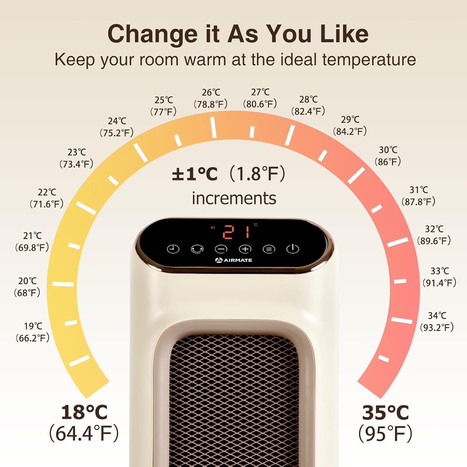 【2S Rapid and Powerful Heating】1500W Advanced PTC ceramic heating technology from Airmate offer faster and more powerful heating. 2500 rpm fan helps spread heat quickly, making you feel the change from cold to warm in 2 seconds.