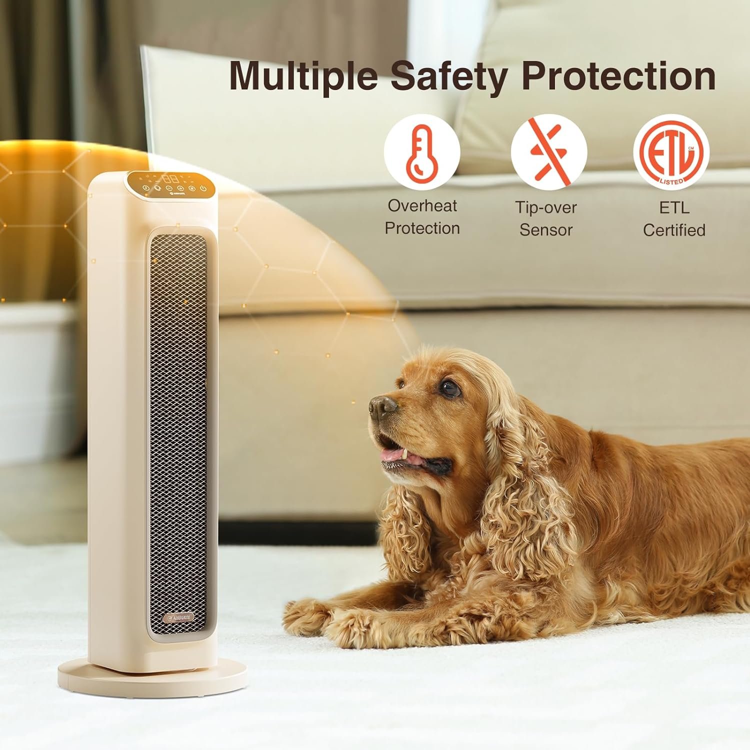 【MULTIPLE SAFETY PROTECTION】 this safety portable space heater comes with multiple security features including overheat,safety plugs and tip-over protection, auto off after 24h without operation.