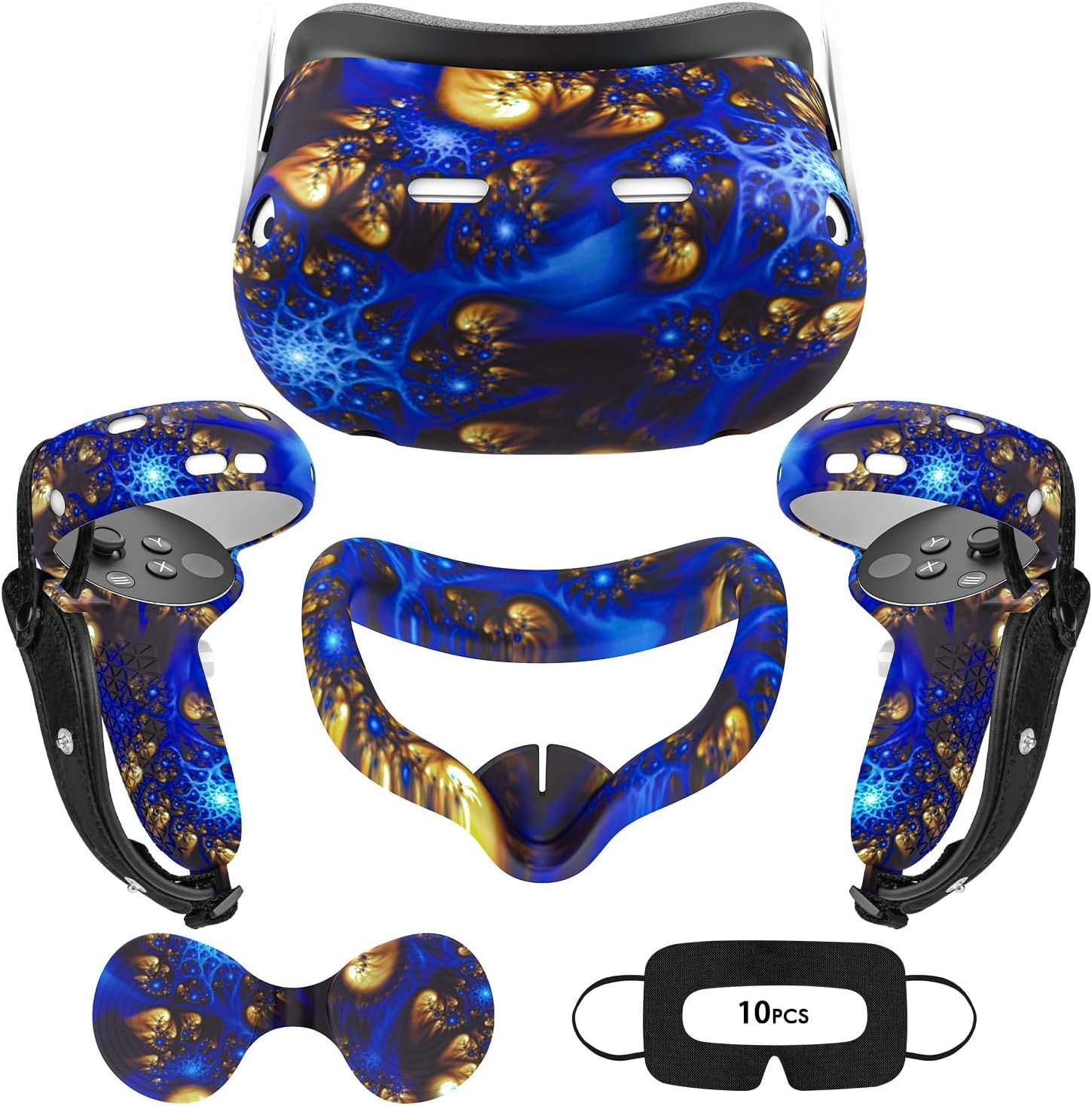 AIXOTO for Oculus Quest 2 Accessories, Accessory Set for Meta Quest 2, Include Silicone Face Cover, Controller Grip Cover, VR Shell Cover, Lens Cover and 10PCS Disposable Eye Cover (BlueFire)