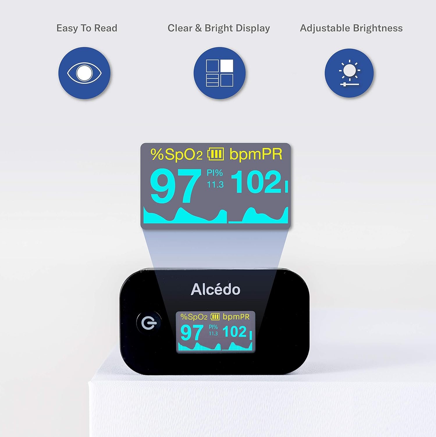 EASY-TO-USE – One button operation makes getting accurate readings easy to take anytime and anywhere. The large dual color OLED display with brightness adjustment allows for easy reading. Display features multiple data: oxygen levels, pulse rate, pulse rate bar graph, pulse rate waveform, and perfusion index.