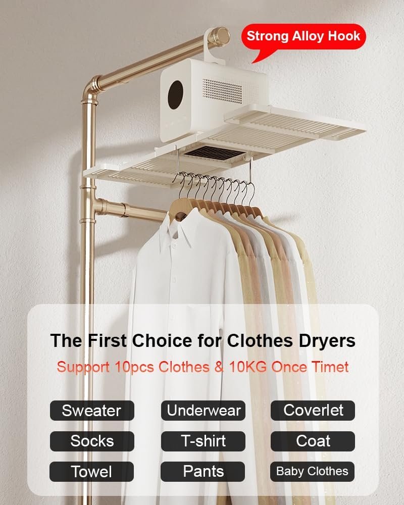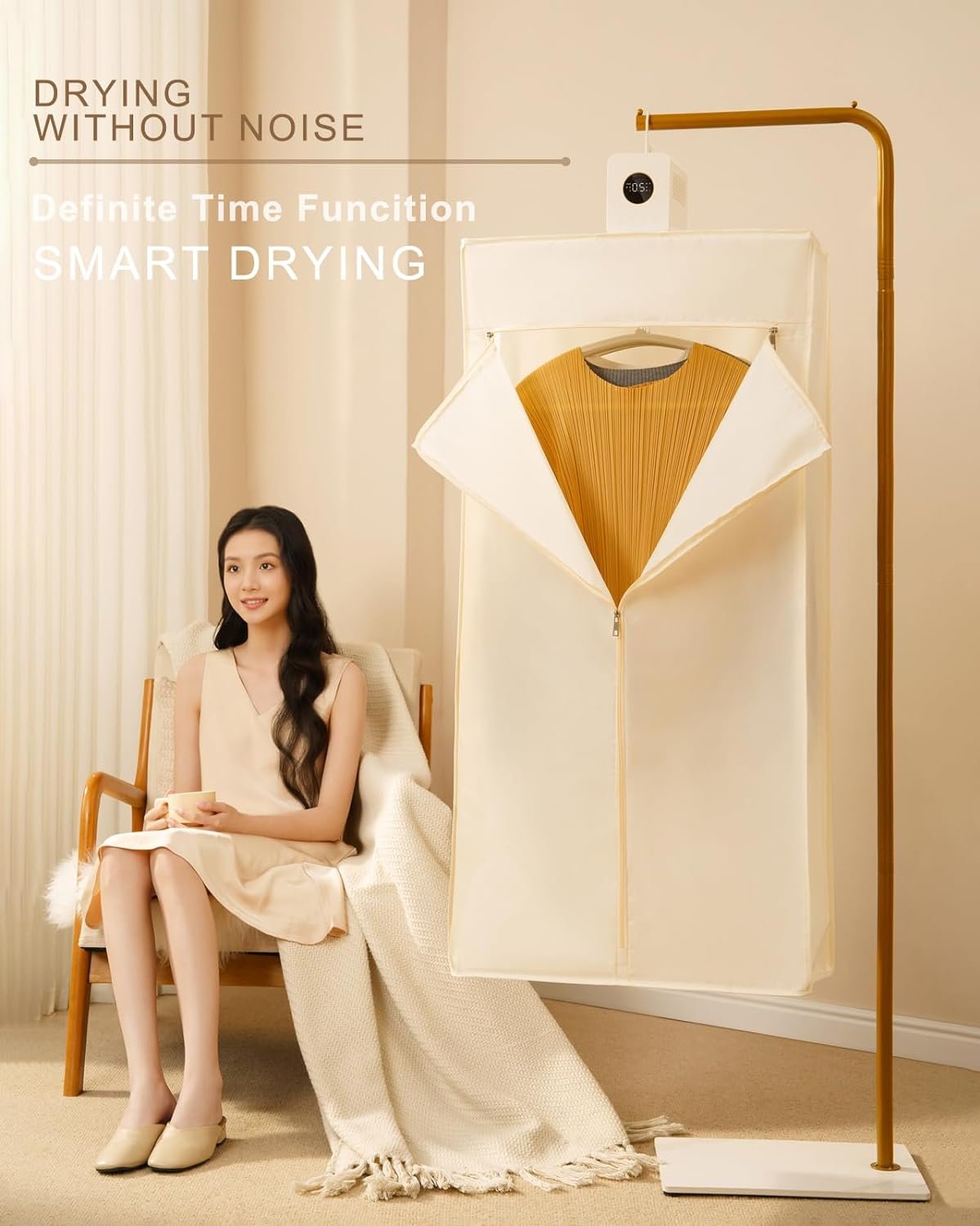 ⏱【Customizable Timer】Adjust timer according to fabric type or individual drying needs. Additionally, the dryer is equipped with a night quiet mode, allowing you to dry clothes while you sleep without disturbance.