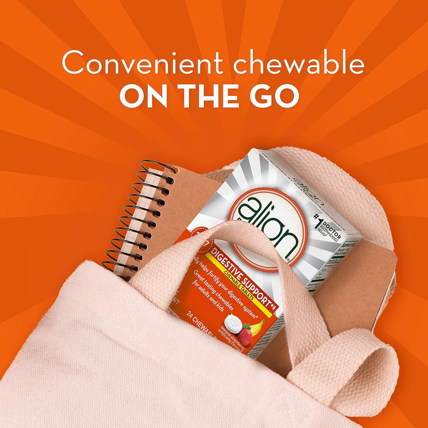 Fortify your digestive system with healthy bacteria! Recommended by Gastroenterologists two times more than any other probiotic brand, Align daily probiotic supplement is the #1 doctor and gastroenterologist recommended probiotic brand and contains the unique probiotic strain, Bifidobacterium 35624TM. Common issues such as diet, travel, and stress can disrupt the natural balance of bacteria in your digestive system. After using Align Probiotic 4 out of 5 people felt more confident with their digestive health. Align Chewables, a daily probiotic supplement for adults and kids, naturally helps to fortify your digestive system with healthy bacteria. Add Align Chewables to your daily routine as a great way to help support you and your family’s digestive wellness. Align Probiotics contain guaranteed potency and each lot is DNA tested to ensure the quality of our unique strain, Bifidobacterium 35624TM. Align Chewable Probiotic Tablets are gluten-free, contain NO artificial colors or sweeteners, and do not require refrigeration. THESE STATEMENTS HAVE NOT BEEN EVALUATED BY THE FOOD AND DRUG ADMINISTRATION. THIS PRODUCT IS NOT INTENDED TO DIAGNOSE, TREAT, CURE, OR PREVENT ANY DISEASE Among Doctors and Gastroenterologists who recommended a brand of probiotic in ProVoice 2022 survey. In a survey of 104 adults who self-reported their occasional digestive issues were less bothersome during and after using Align Probiotic for 3 weeks. Among Doctors and Gastroenterologists who recommended a brand of probiotic in ProVoice 2022 survey.