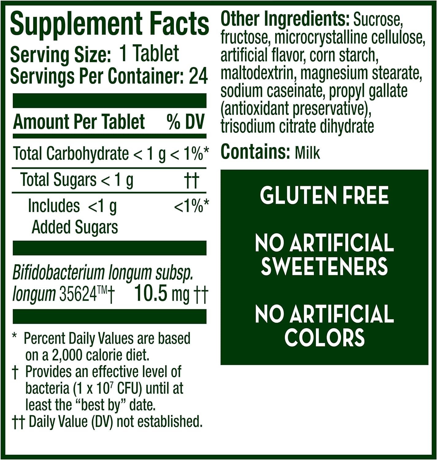 SUPPLEMENT YOUR DIGESTIVE SYSTEM WITH HEALTHY BACTERIA*: Align Probiotics contain guaranteed potency. Each lot is DNA tested to ensure effective levels of Bifidobacterium 35624. Align Chewable Probiotic Tablets are gluten-free & don’t require refrigeration
