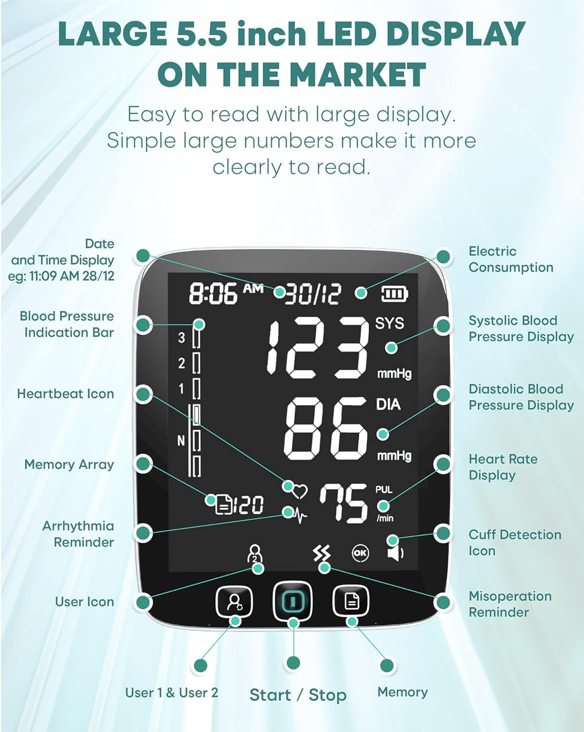 ☑TOP BRAND RECOMMENDATION BY DOCTORS & PHARMACISTS: Our Blood Pressure Monitor with custom-made large LED screens give you a great visual experience, making readings clearer and users can view the results more quickly. Clear large fonts and High-Def Backlit Screen offers clear reading at nighttime for advanced measurement experience.