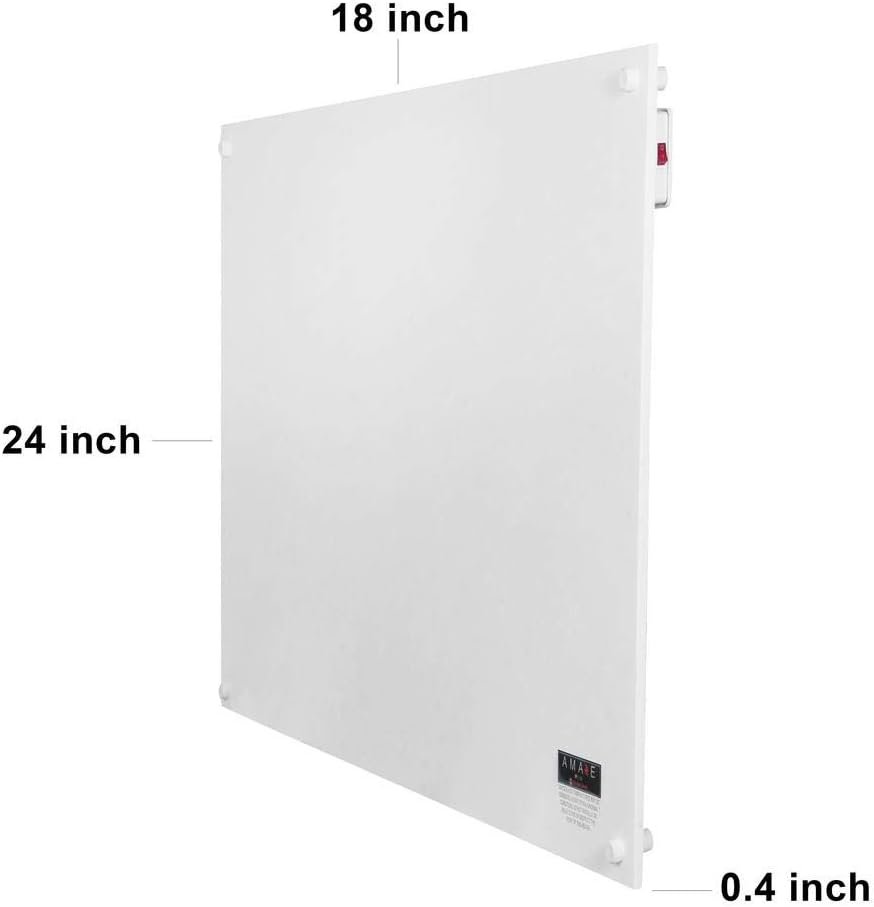 SPECS: Ideal for a 80 sq. ft. room or bathroom, IP44 Splash proof, 250 watts (853 btu/Hr), 120 volts, 2.08 amps. Product Dimensions: 24” x 18” x 0.50”. The product may be PAINTED (to match your décor) and/or HARD WIRED! Comes with easy installation instructions and wall mount kit and a 6 ft. power cord.