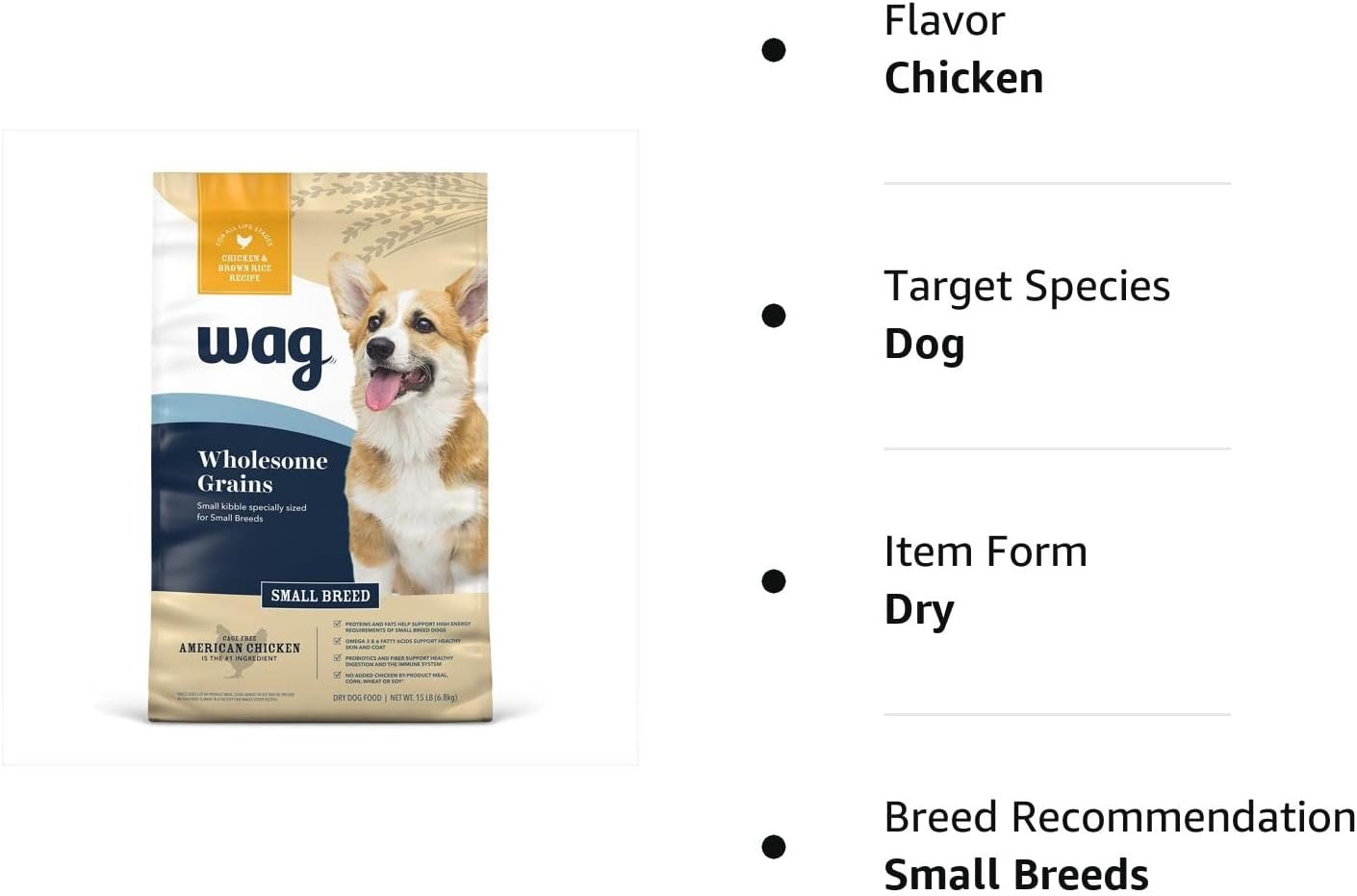15 LB bag of Wag Dry Dog Food, Chicken & Brown Rice Recipe Small Breed
