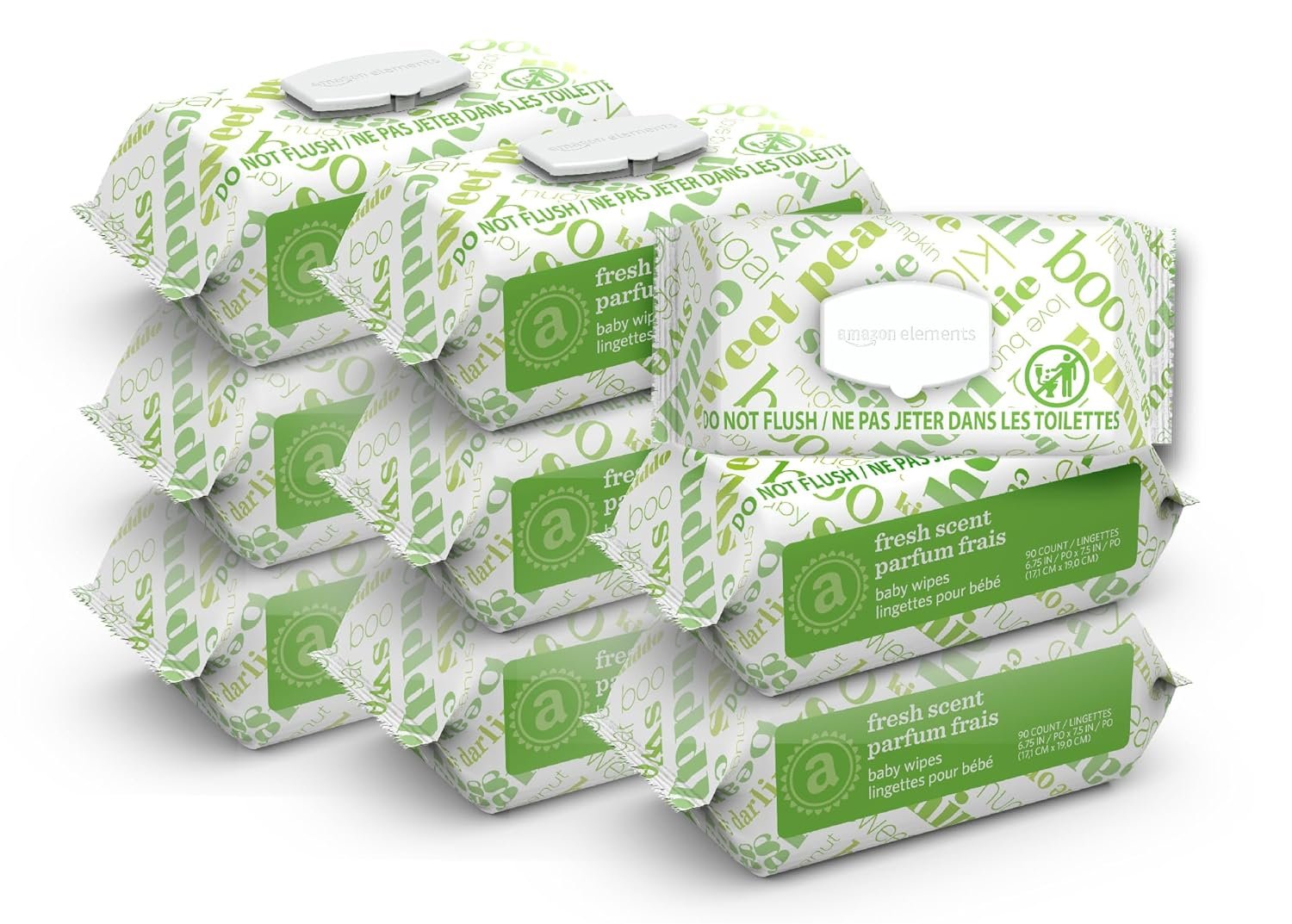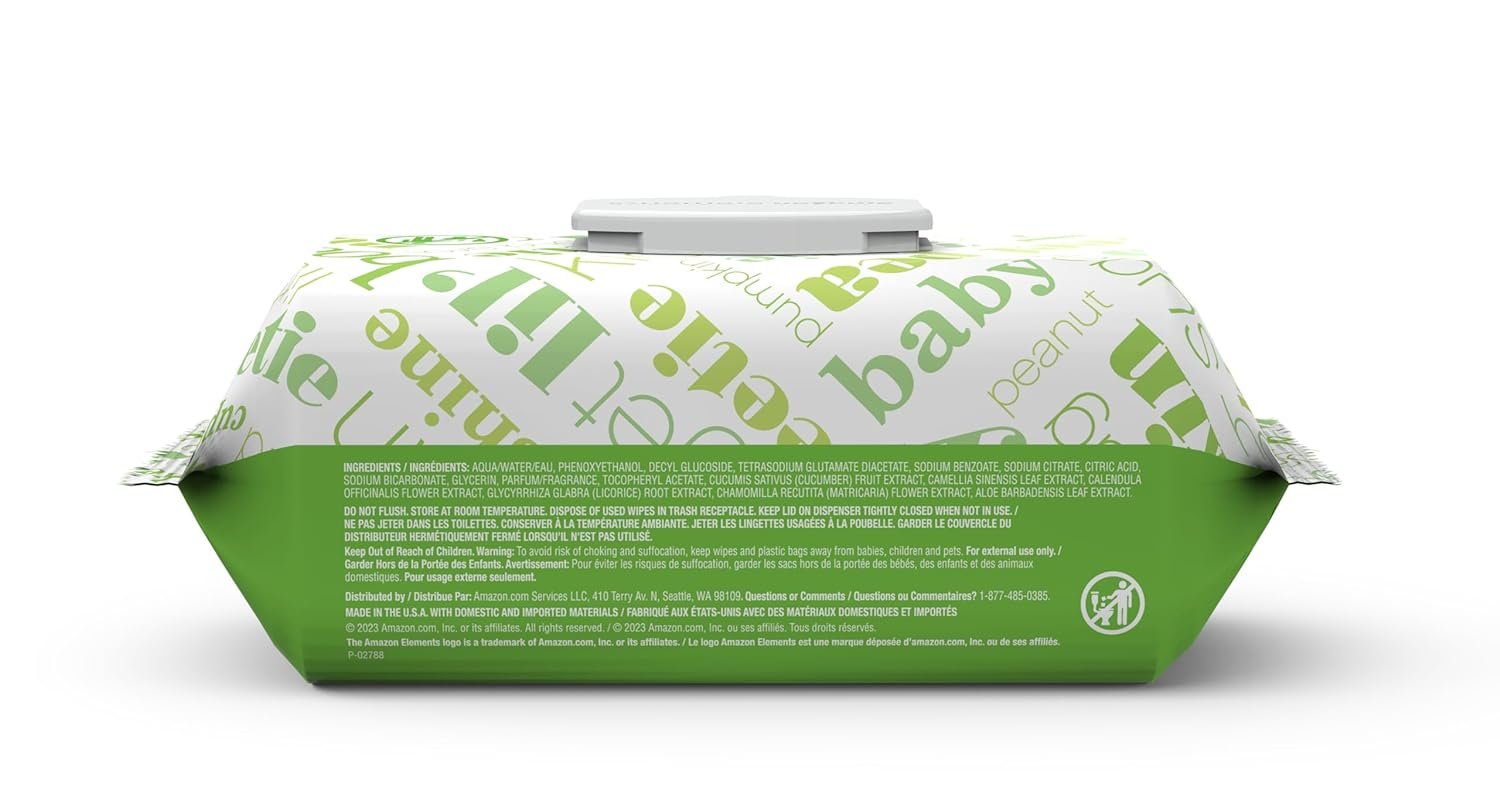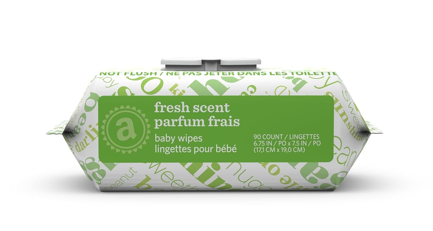 Amazon Elements Fresh Scent wipes are made with pharmaceutical-grade purified water, cucumber, aloe and green tea oil for clean and gentle wipes. Each one is strong, soft, large, and textured for cleaning hands, face, and diaper area. Your order includes nine flip-top packs for on the go.