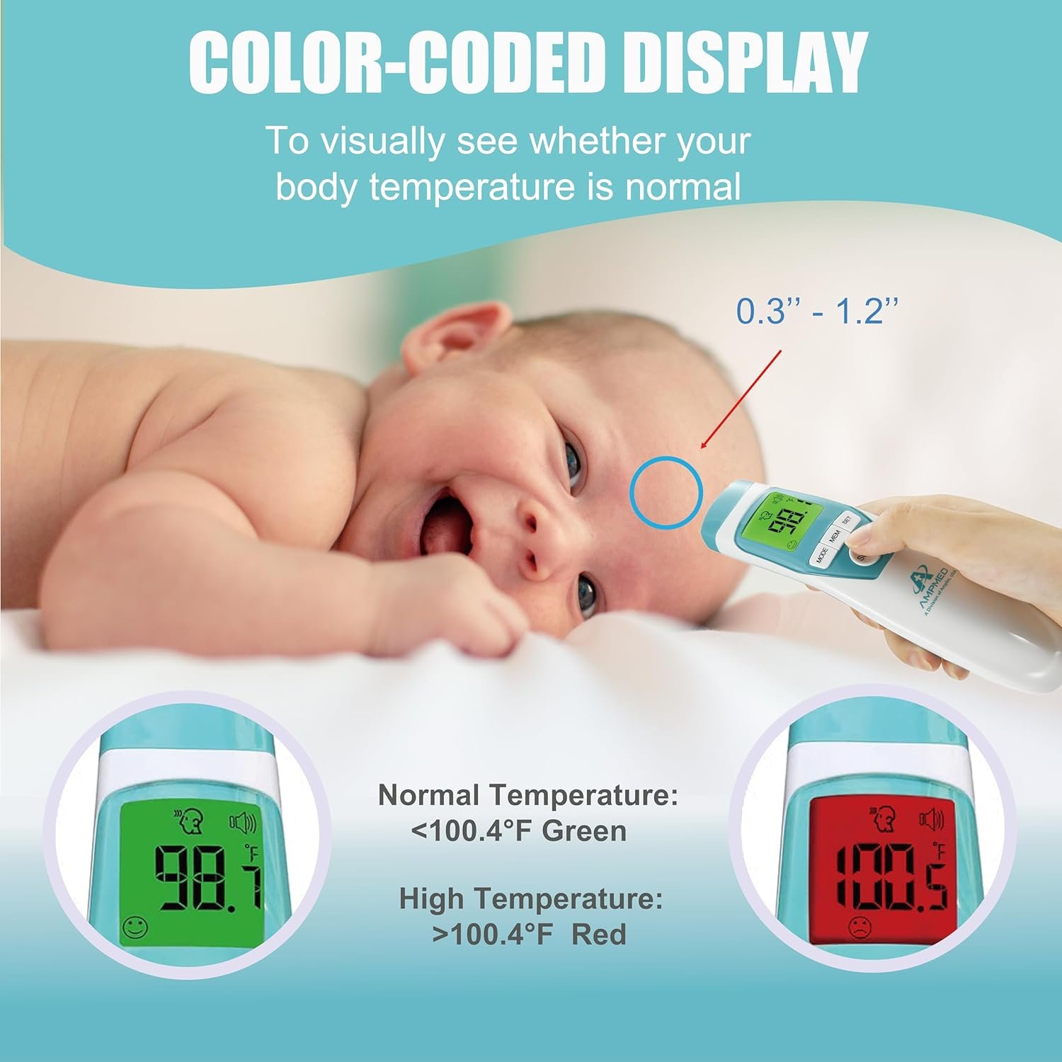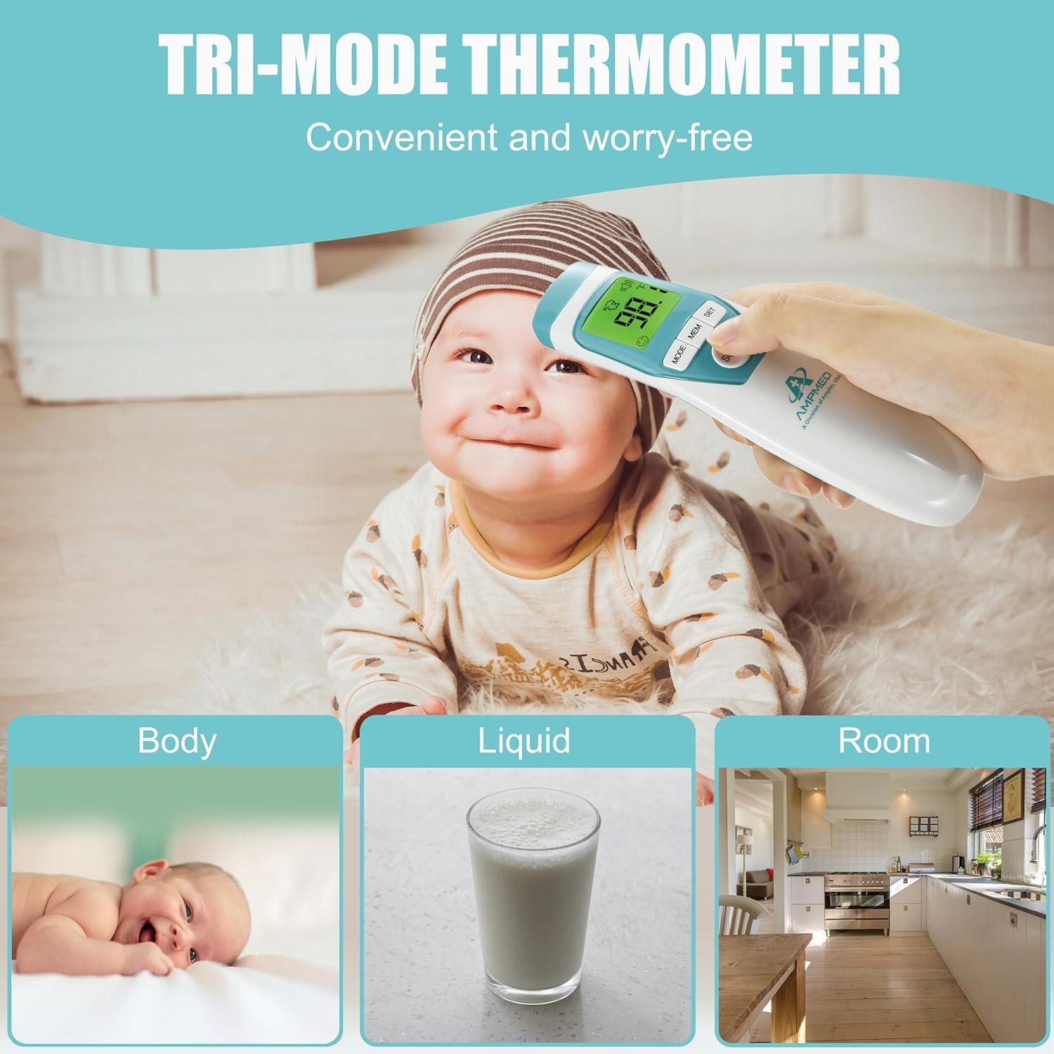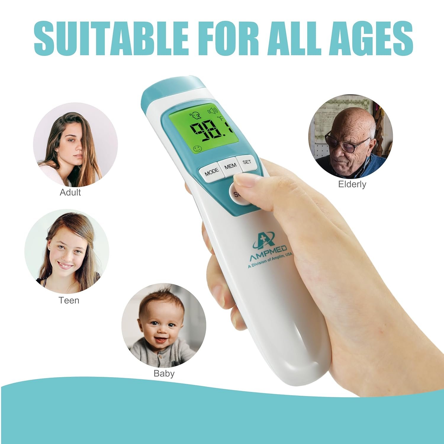 The Amplim Baby Thermometer is designed for all ages, making it an ideal choice as a kids thermometer, infant thermometer, and even a thermometer for adults. This versatile device can be used as a forehead thermometer, temporal thermometer, or non-contact thermometer.