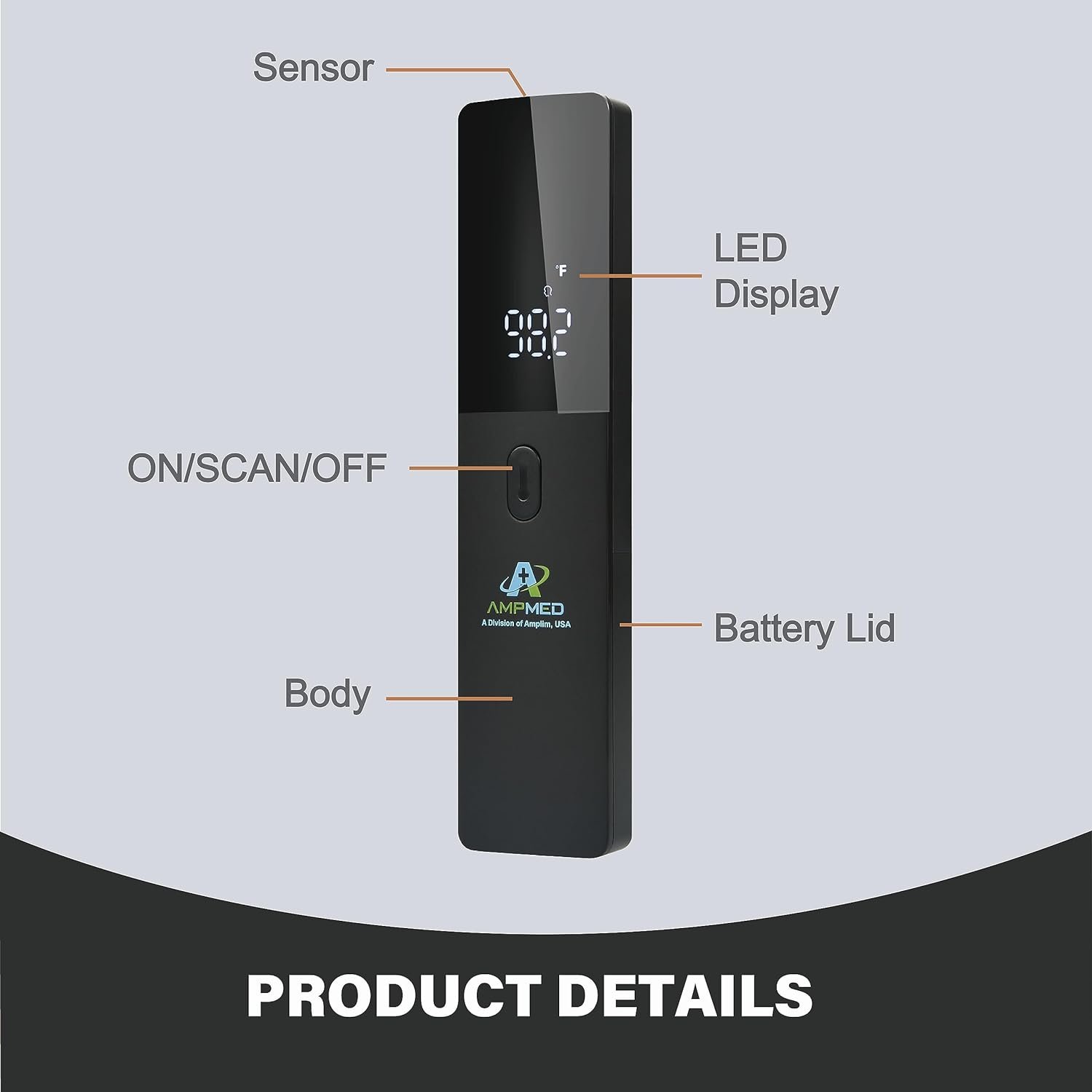 Medical Grade Thermometer: Amplim’s thermometer is hospital-approved and provides professional-grade results to guide your health decisions for your family, work, school, or nursery care