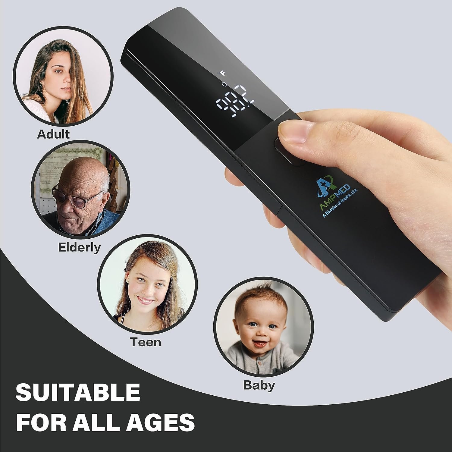 Accurate Readings: The Amplim AmpMed Contactless Forehead Thermometer with advanced infrared technology for a quick 1 sec rapid home test without skin contact, is ideal for all ages