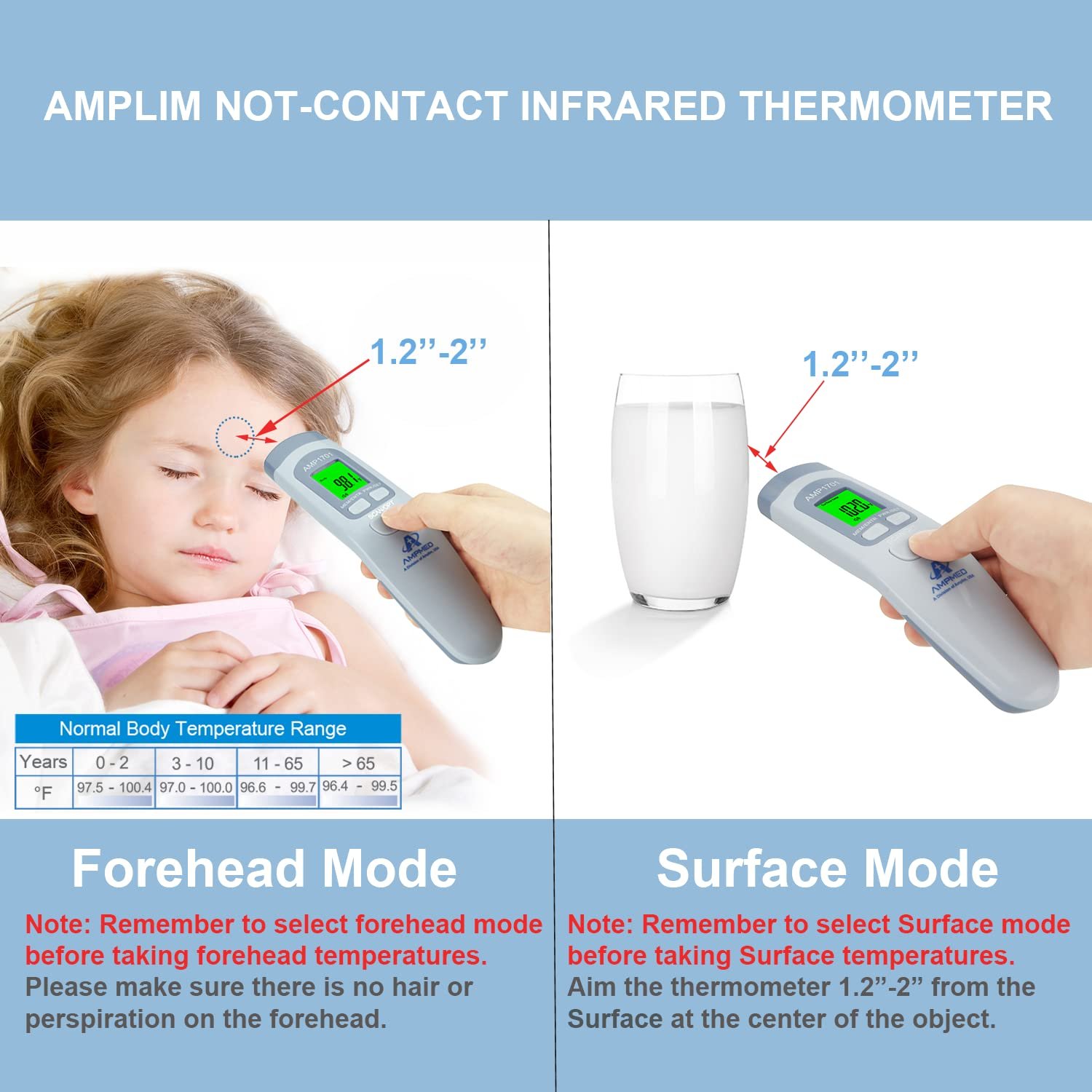 Amplim Non-Contact Forehead Thermometer for Kids and Adults. AmpMed FSA HSA Approved No-Touch Baby Head Temporal Thermometer. Touchless Digital Fever Thermometer for Accurate Temperature Reading