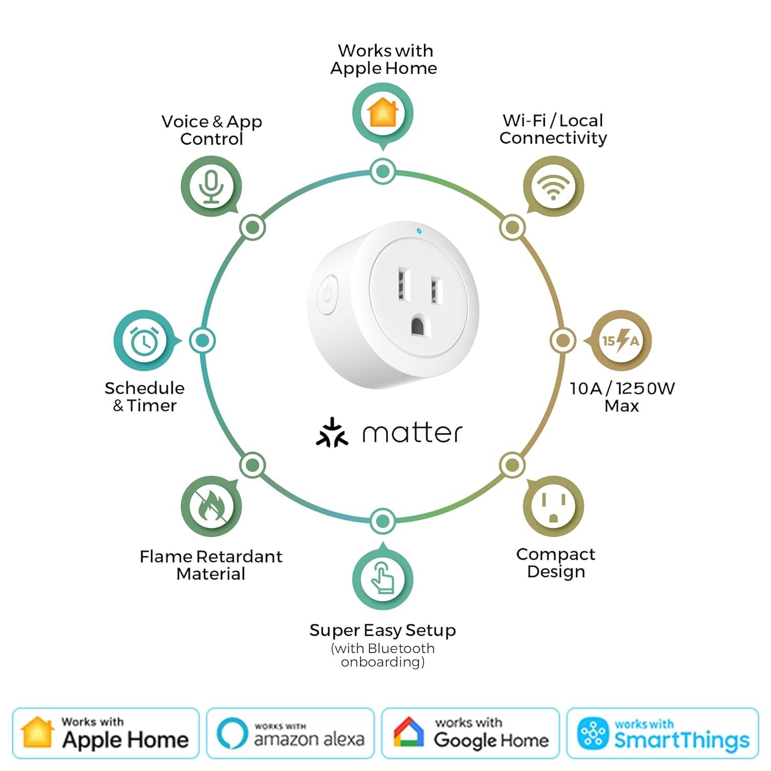【Easy Setup】With Matter, Skip the step of downloading and registering multiple manufacturers’ apps every time you buy a new device. Instead, head straight to certified smart home platforms like Apple Home, Alexa, Google Home, SmartThings, to control all your Matter devices.【TIP】Matter-certified hub or controller (HomePod, Echo Dot, Nest, SmartThings Hub) is required for Apple Home/Alexa/Google Home/SmartThings platforms.