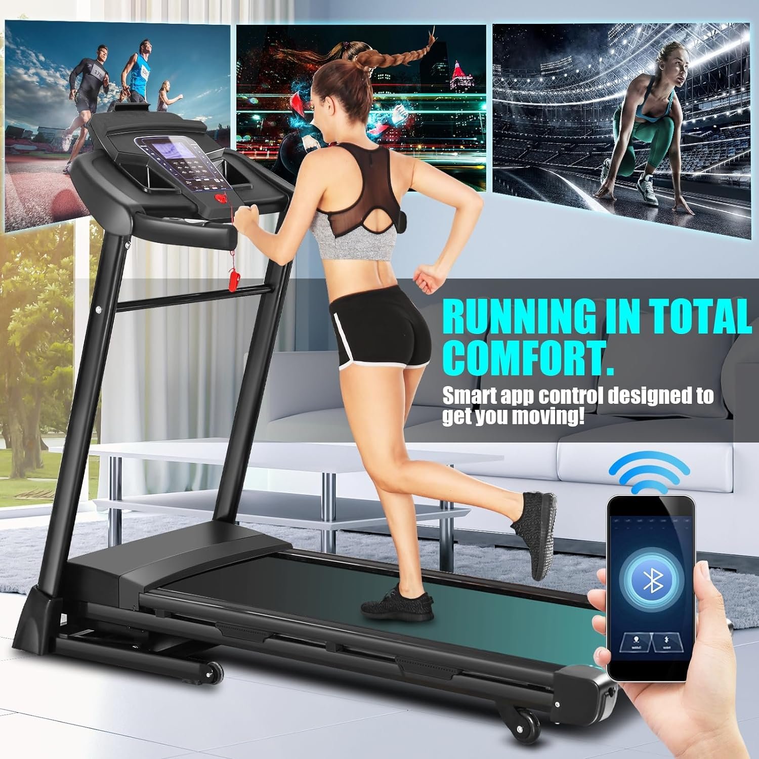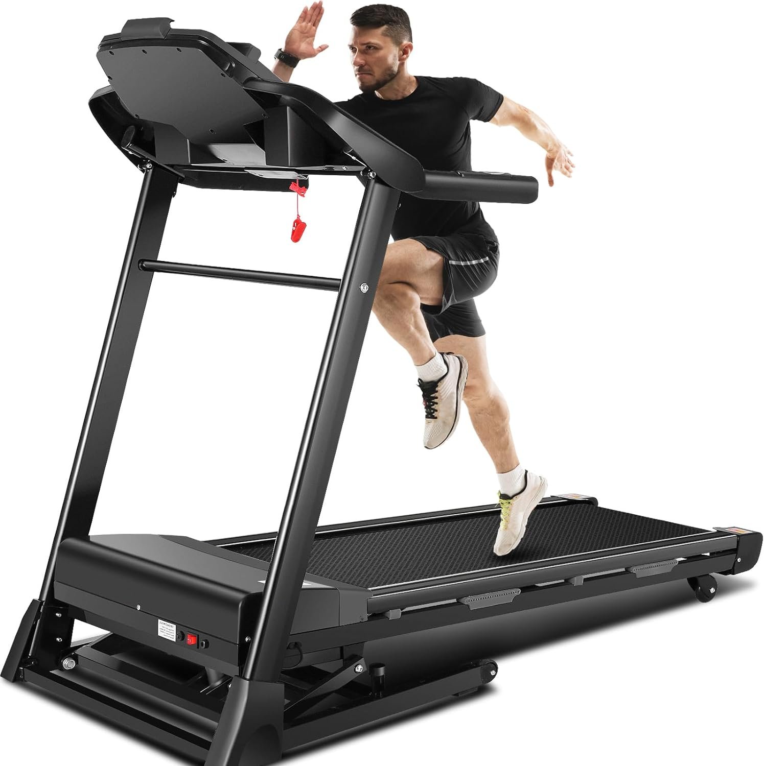 🏃‍♂️【 Clever Design & Large Console & Handy Handrails】: The sophisticated soft-drop system allows you to gently unfold the incline treadmill with a simple press of your foot; The large central console gives you all the info you need while running, including speed, time, distance, calories burned; The handrails allow for quick and easy adjustment of both speed and incline; All our portable treadmills for home are quality-assured and we offer full product protection for a whole year.