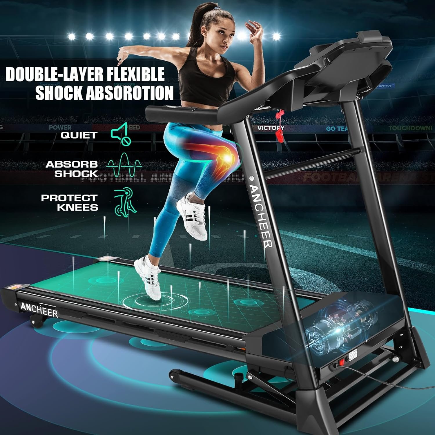 ANCHEER Treadmill with Automatic Incline, 300 LBS Weight Capacity, 3.25HP Quiet Motor Foldable Treadmills, Ultra-Wide Running Belt, Bluetooth & APP Control & Audio Speakers