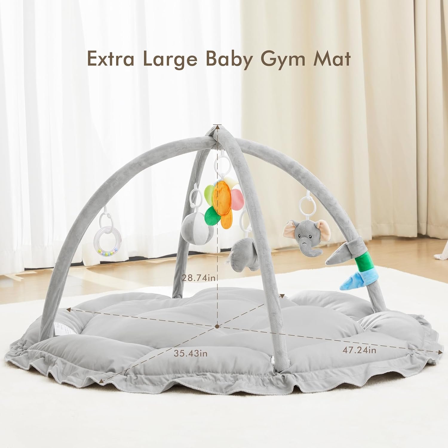 The super-sized gym mat provides wide-open space and offers exceptional padding for your baby to lay or sit.