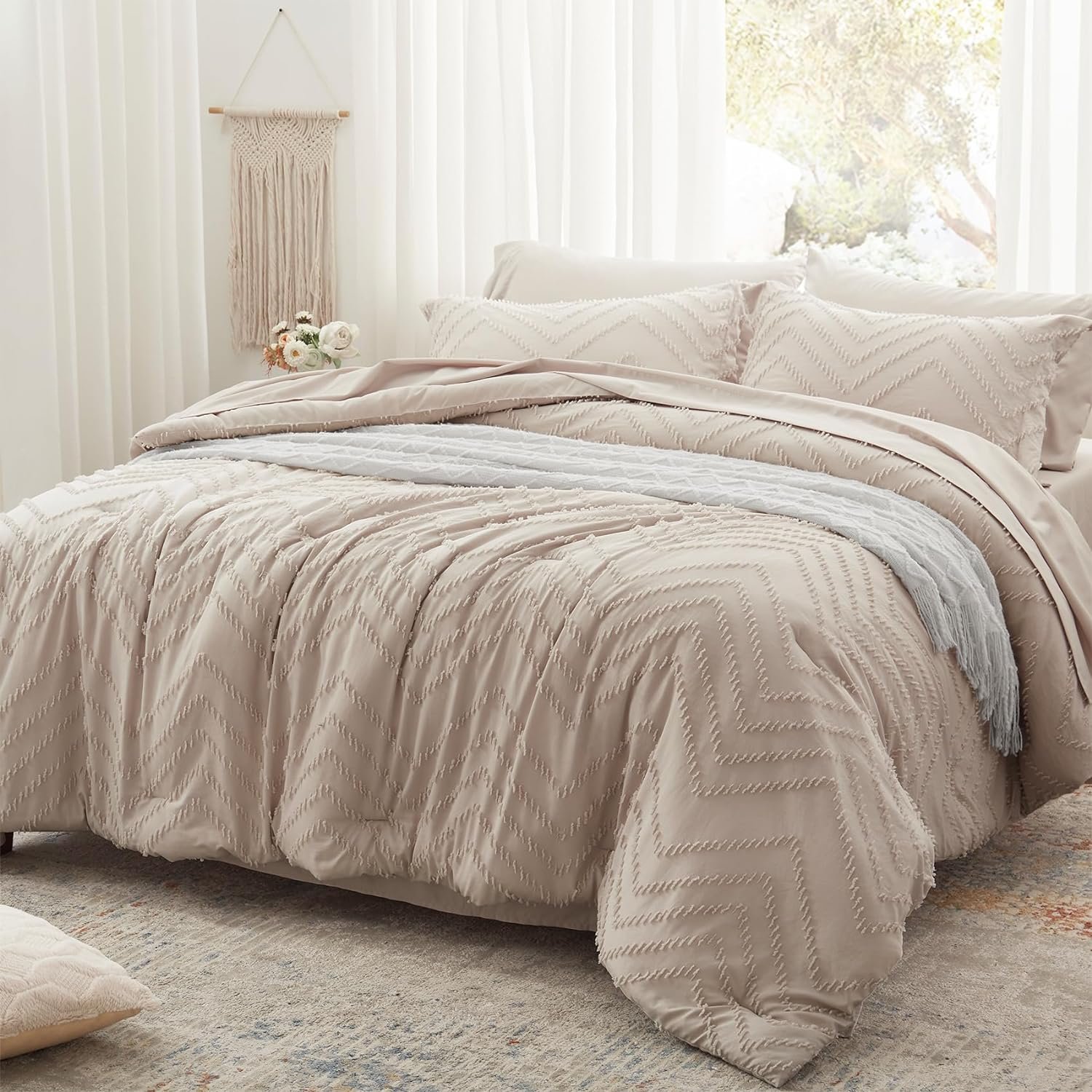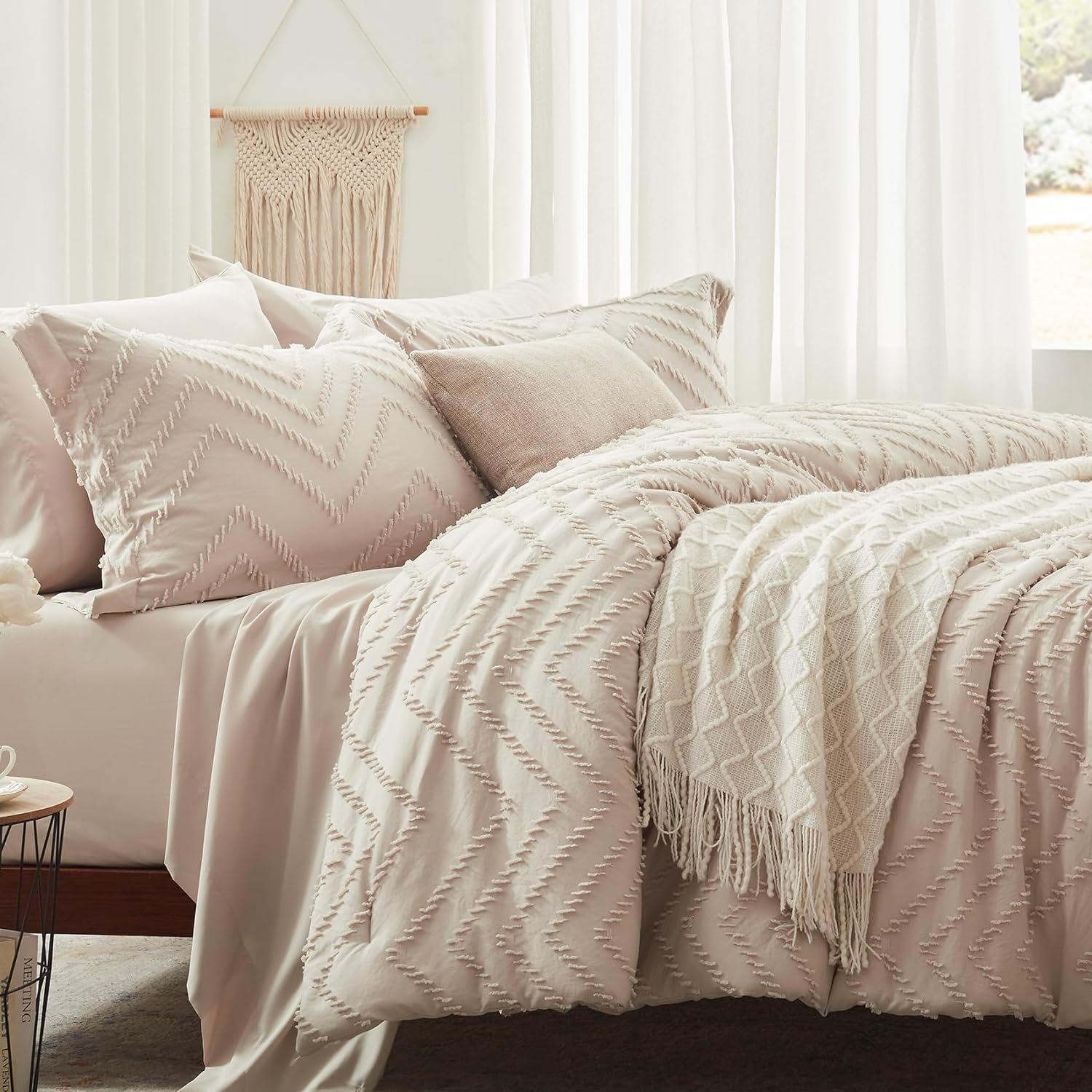 CHIC DESIGN: Our queen size comforter sets adopts shabby chic design which can add some minimal-boho to your bedroom. and the stitches will not loose after washes.