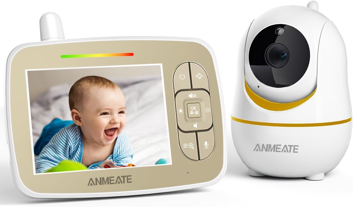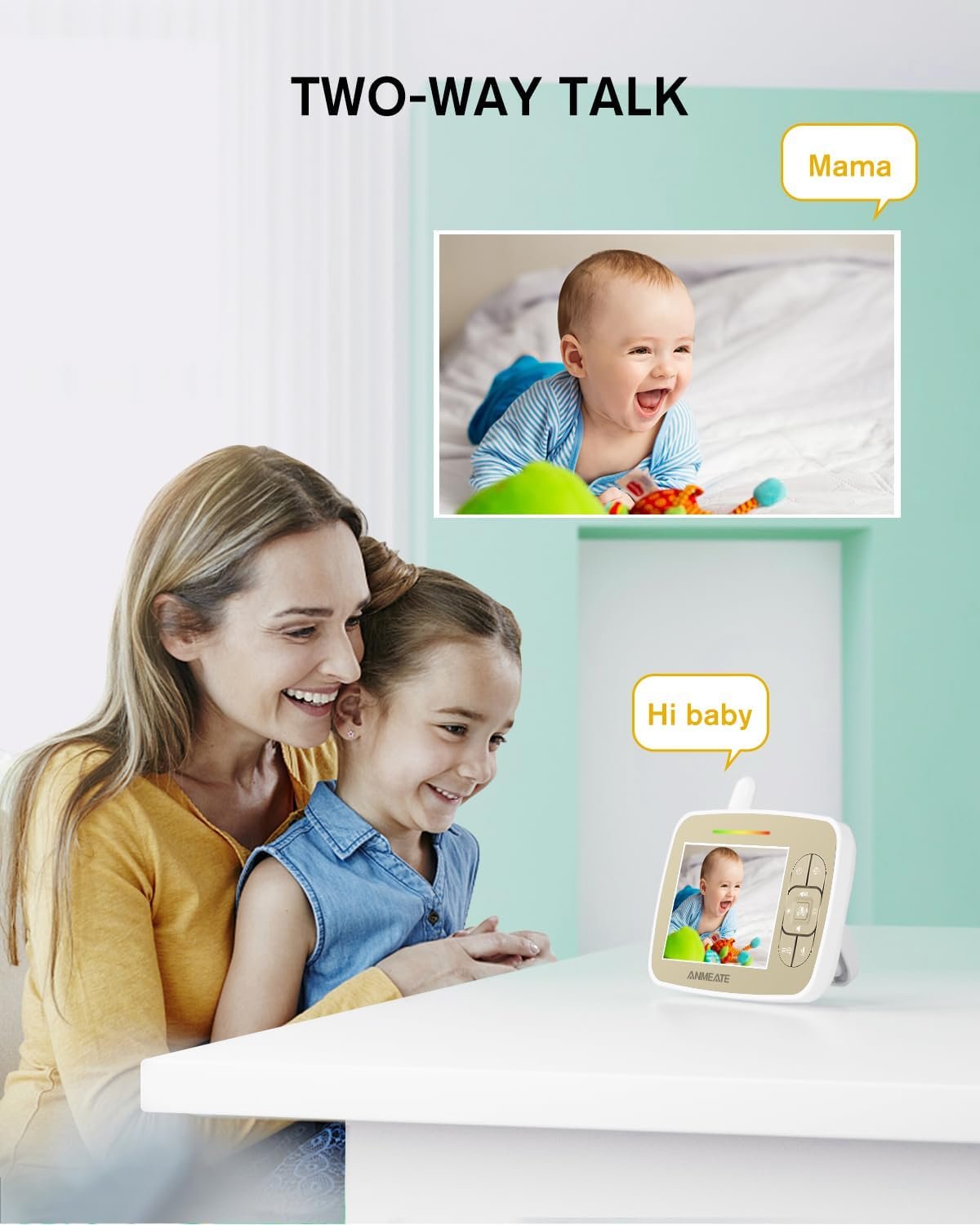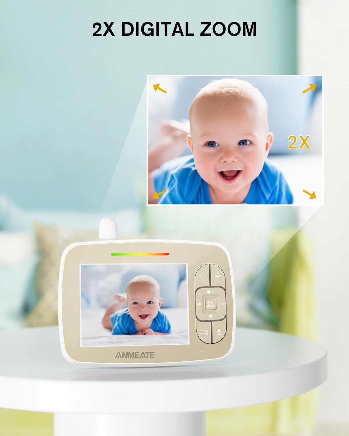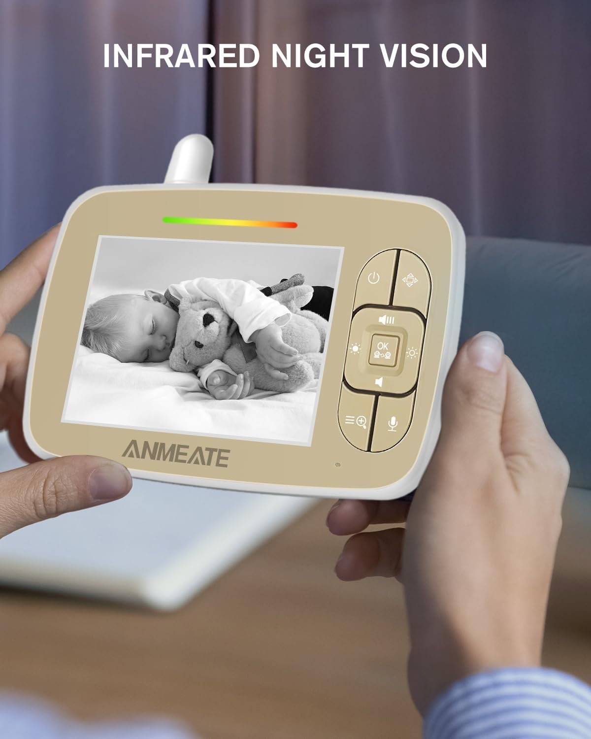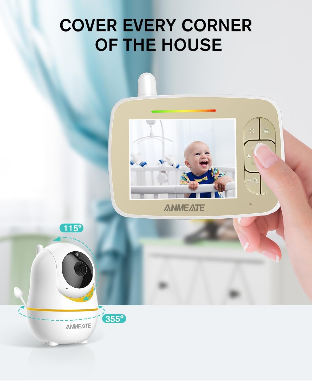 ANMEATE Baby Monitor with Remote Pan-Tilt-Zoom Camera, 3.5” Large Display Video Baby Monitor with Camera and Audio |Infrared Night Vision |Two Way Talk | Room Temperature| Lullabies and 960ft Range