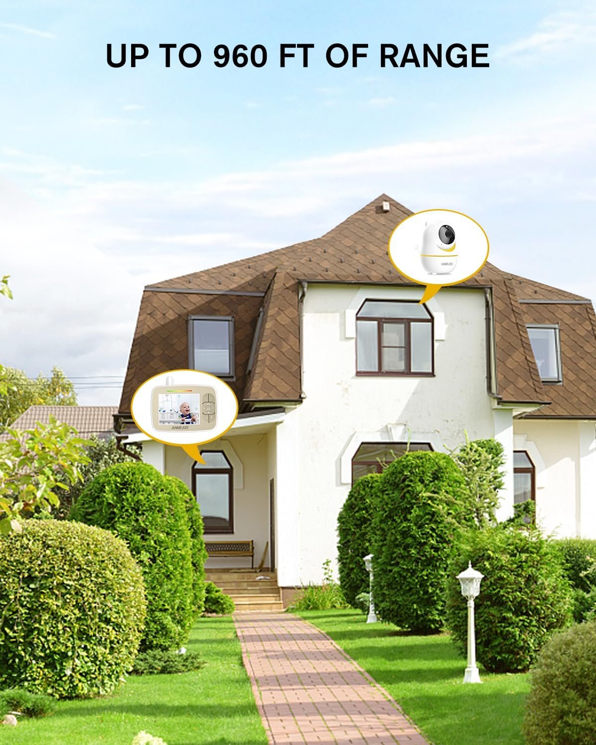 960FT RANGE CONNECTIVITY – Stay in touch with your temperature baby monitor from another room or even from the yard. Go about your day with up to 960 feet of range. Expand up to 4 camera units per monitor unit. Taking babysitting experience to the next level with modern technology making you a super multi-tasker while keeping eye on your baby.