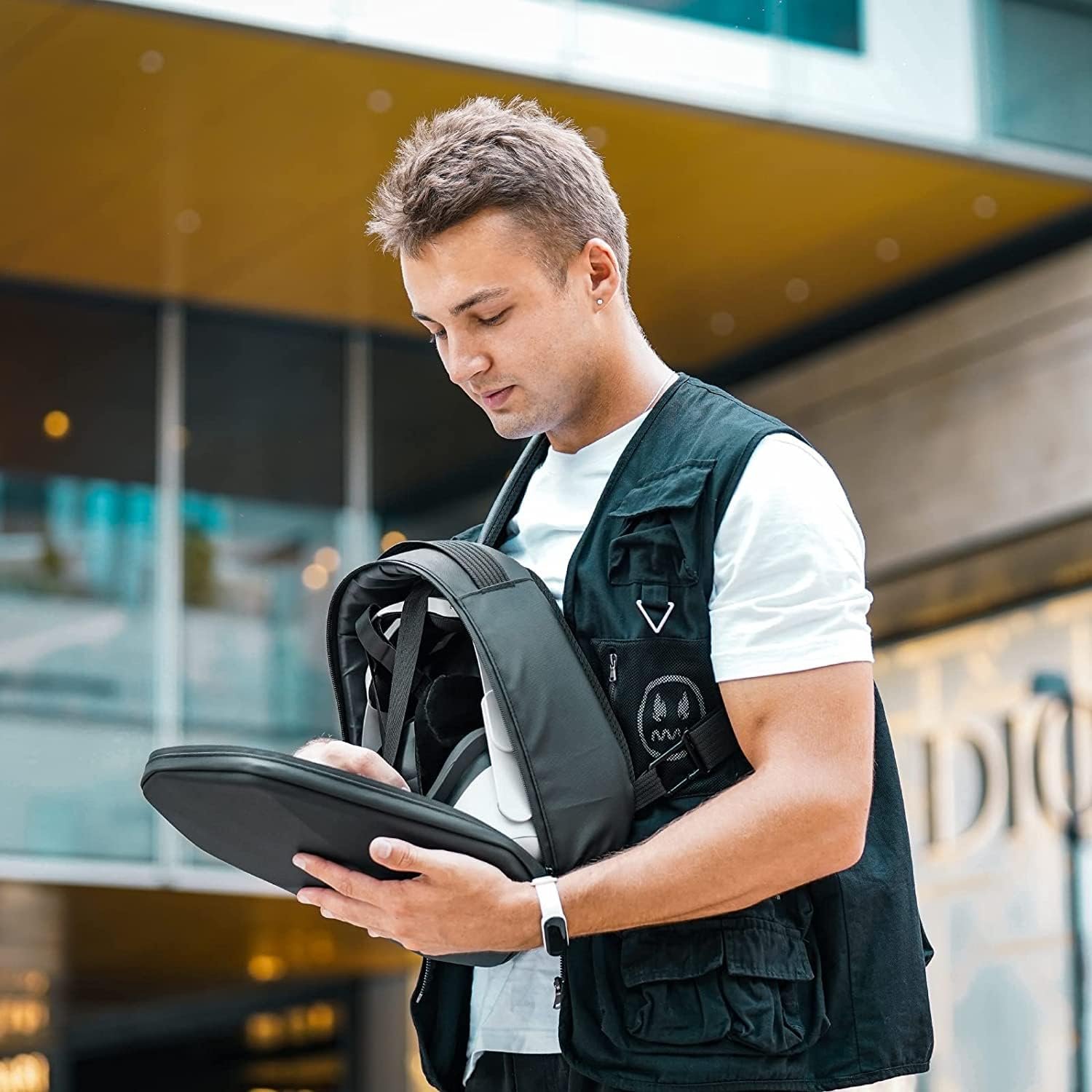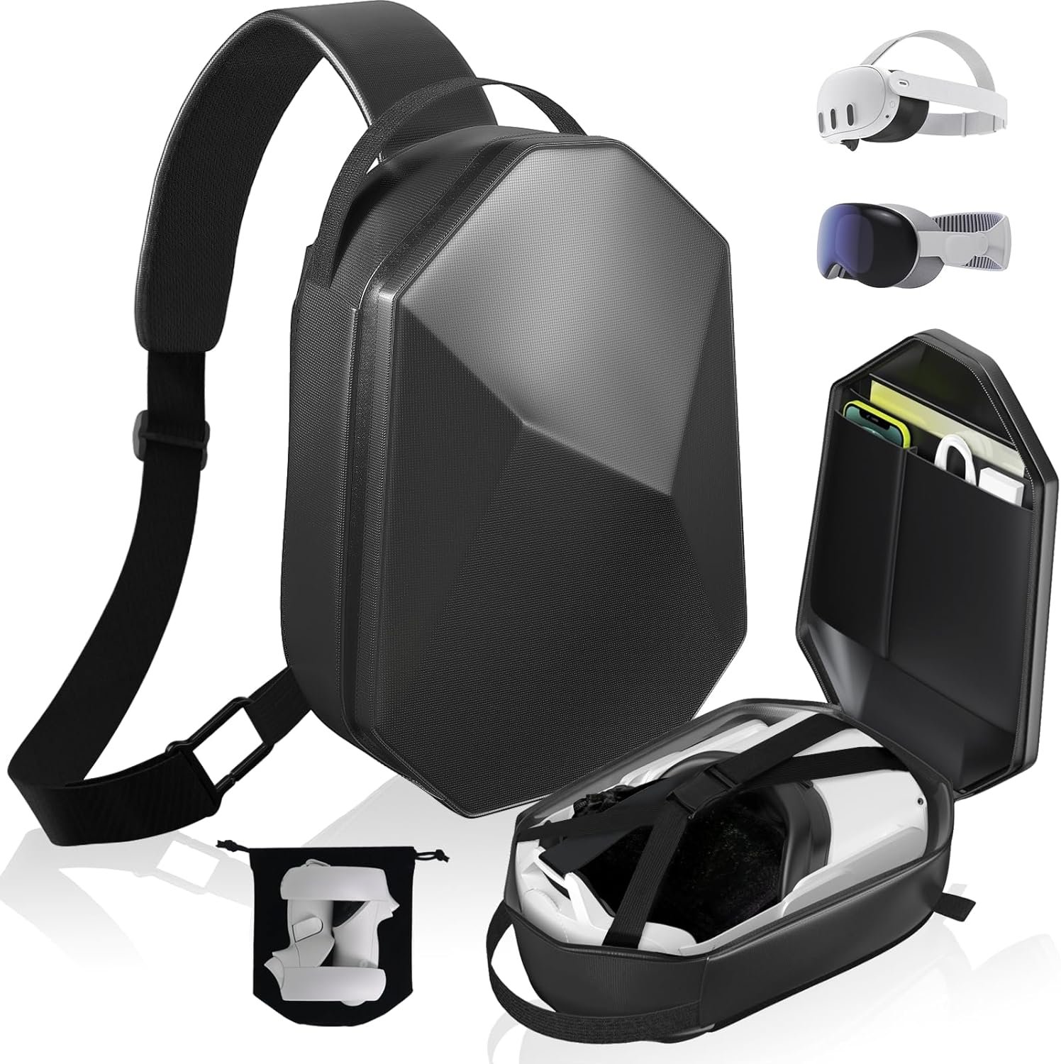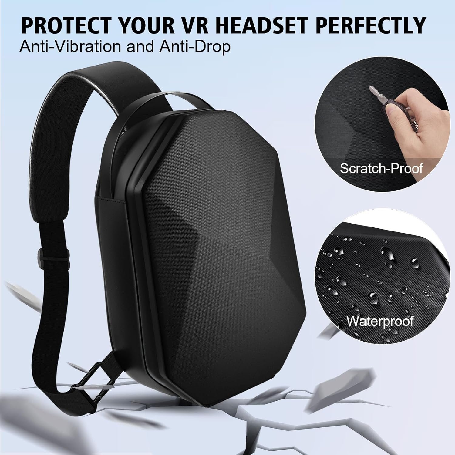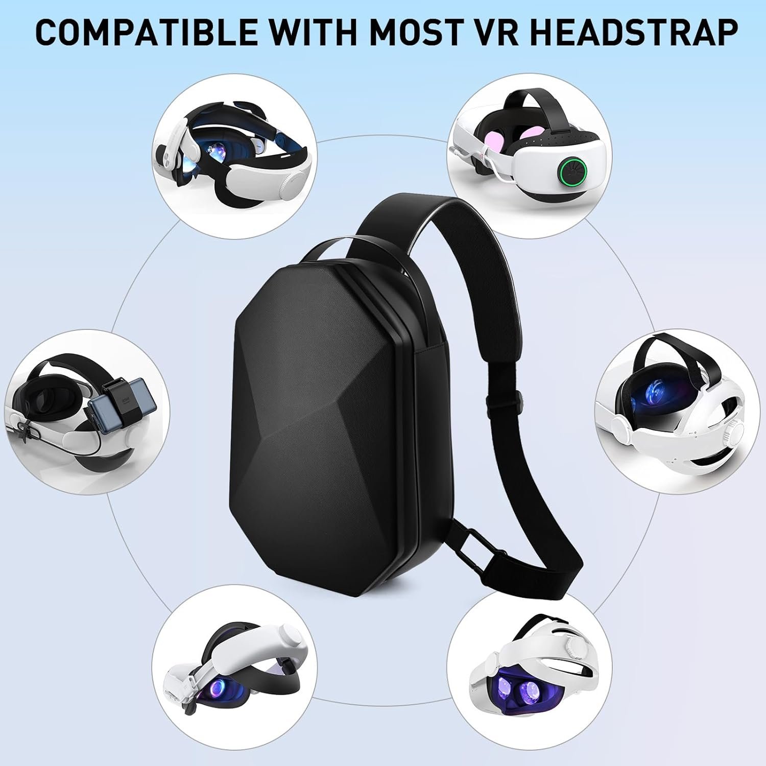 Crossbody Shoulder Backpack: The crossbody shoulder backpack is designed with a buckle for easy loading and unloading. You can change the position of the shoulder strap as you like, slung the shoulder bag to the left or right. The curved hand strap adds an aesthetic touch and provides a comfortable grip. Immerse yourself in the VR world anytime, whether you’re working, dating, shopping, or traveling.