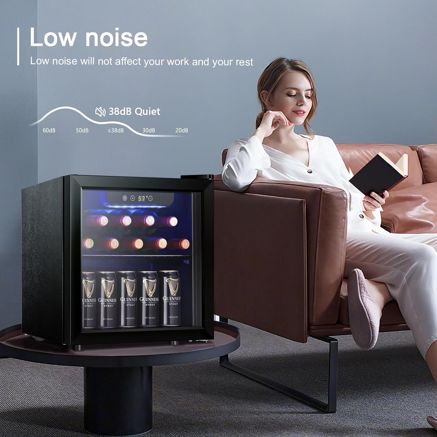 Antarctic Star 12 Bottle 48 Can Wine Cooler/Cabinet Beverage Refrigerator Mini Fridge Low Noise Clear Glass Door Counter Top Cellar for Beer Soda Bar 1.3 cu.ft Black