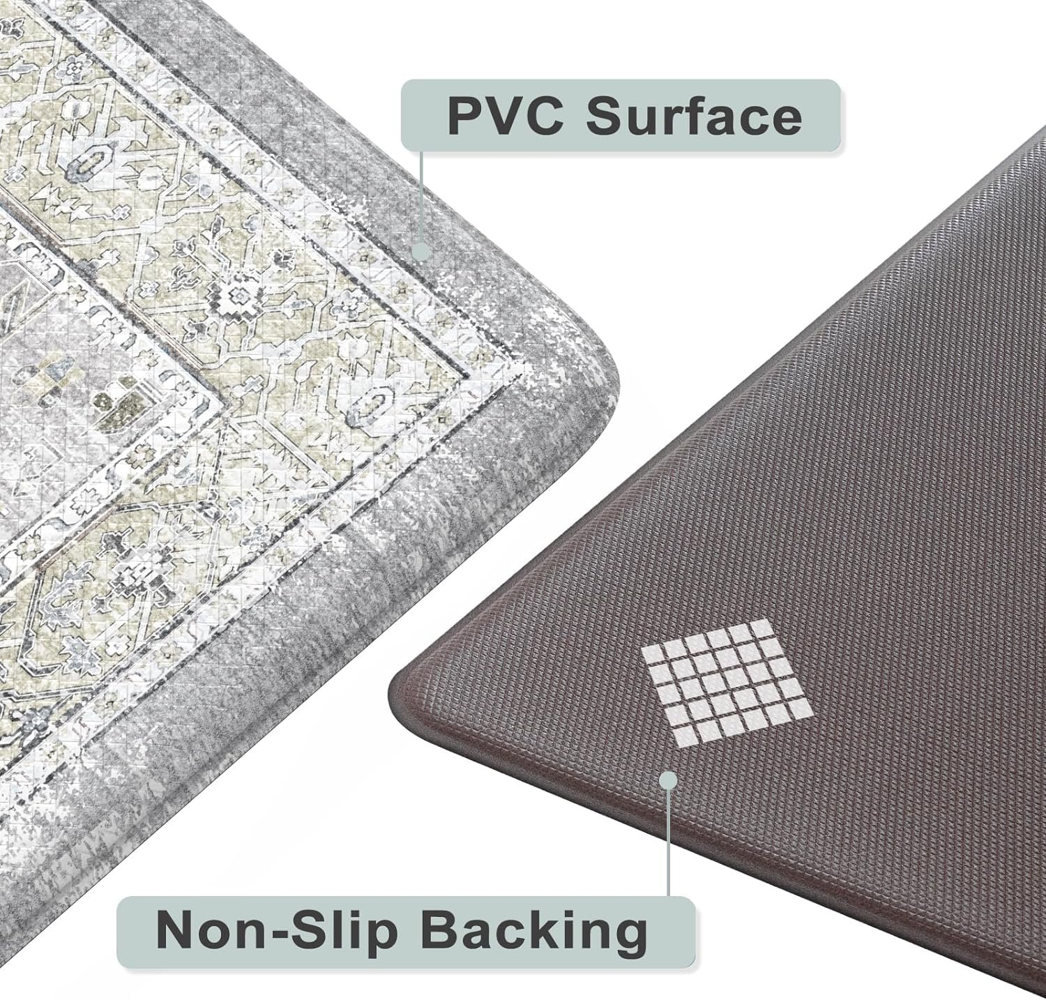 [Stable Kitchen Floor Mats] This memory foam kitchen floor mat is made of high quality PVC material. Excellent mat material determine its durability, elasticity and softness. Pets and kids friendly. It will keep its shape even after a long period of heavy use