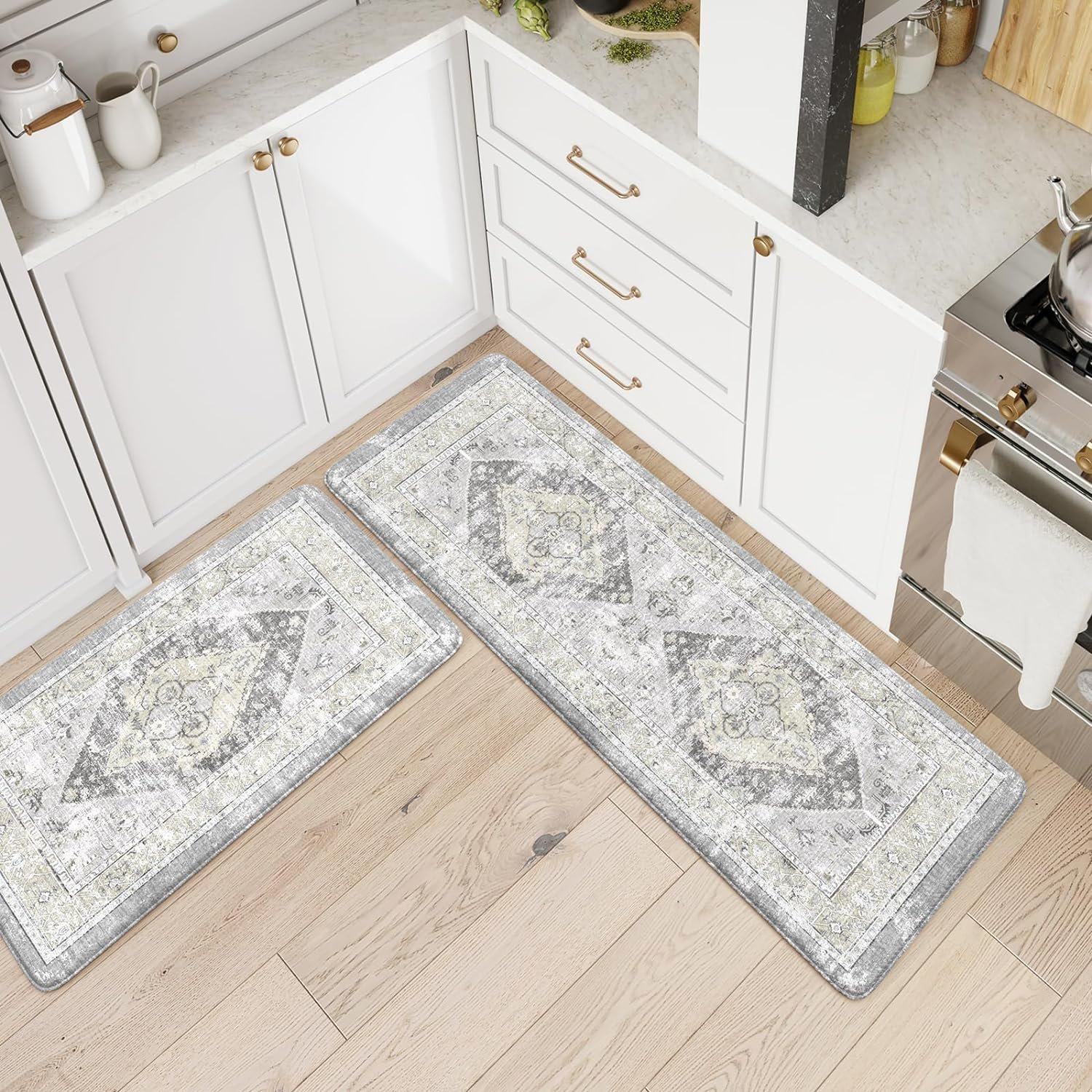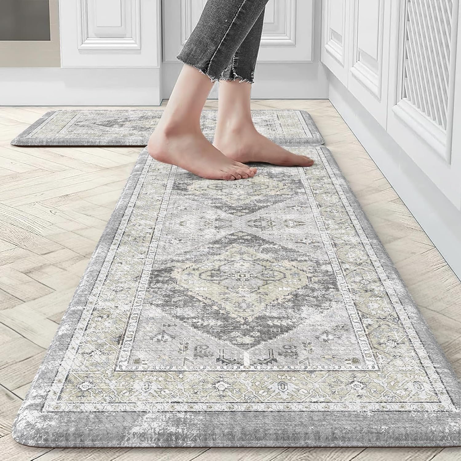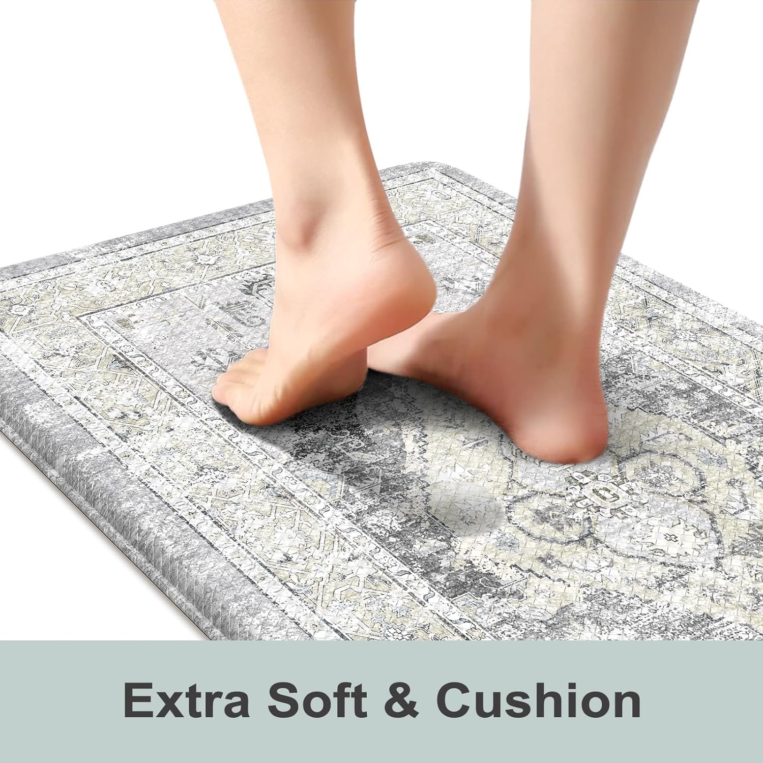 [Perfect Size & Oriental Design] The size of the standing desk mats are 17.3″ x 29″+17.3″ x 47″. This kitchen floor mat features farmhouse style patterns, and the oriental and vintage design can perfectly match any kitchen structural style and brighten up your kitchen.You can place the boho kitchen rug set in kitchen sink, laundry room, office, bathroom, entrance,standing desk