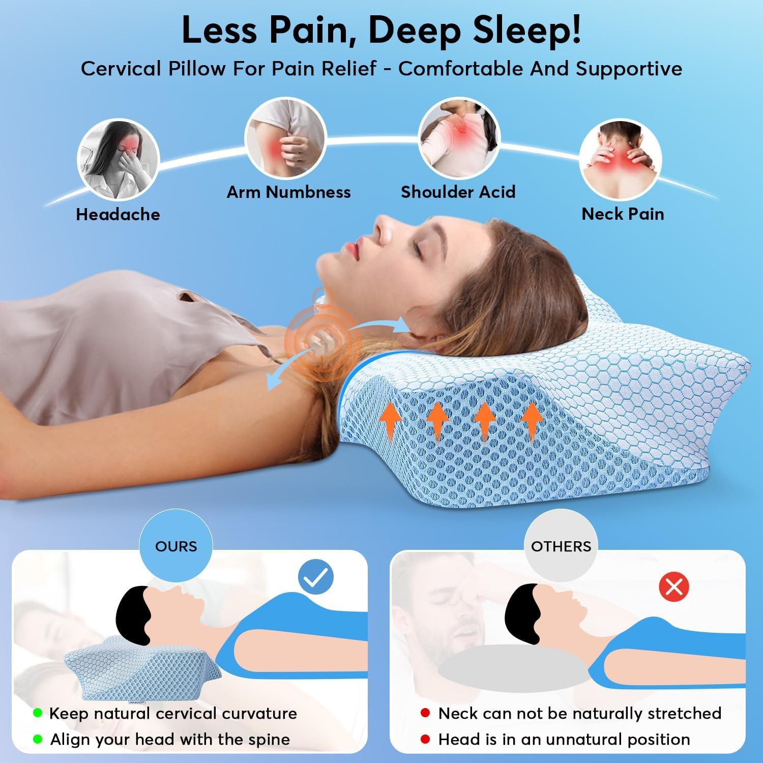 🌛 RELIEVE NECK AND SHOULDER PAIN: Do you insomnia all night? Do you wake up in pain? With a kinked neck? This cervical pillow provides perfect support to your back neck and shoulder, alleviating stiffness, pain and tension headaches. Say Goodbye to neck and shoulder pains and say Hello to deep sleep!