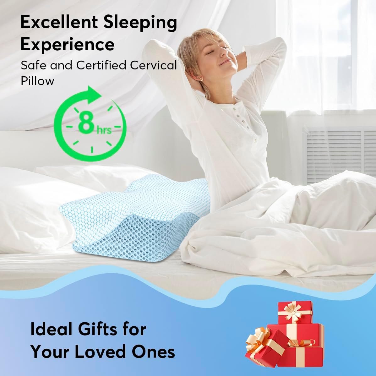 🌛 RELIEVE NECK AND SHOULDER PAIN: Do you insomnia all night? Do you wake up in pain? With a kinked neck? This cervical pillow provides perfect support to your back neck and shoulder, alleviating stiffness, pain and tension headaches. Say Goodbye to neck and shoulder pains and say Hello to deep sleep!