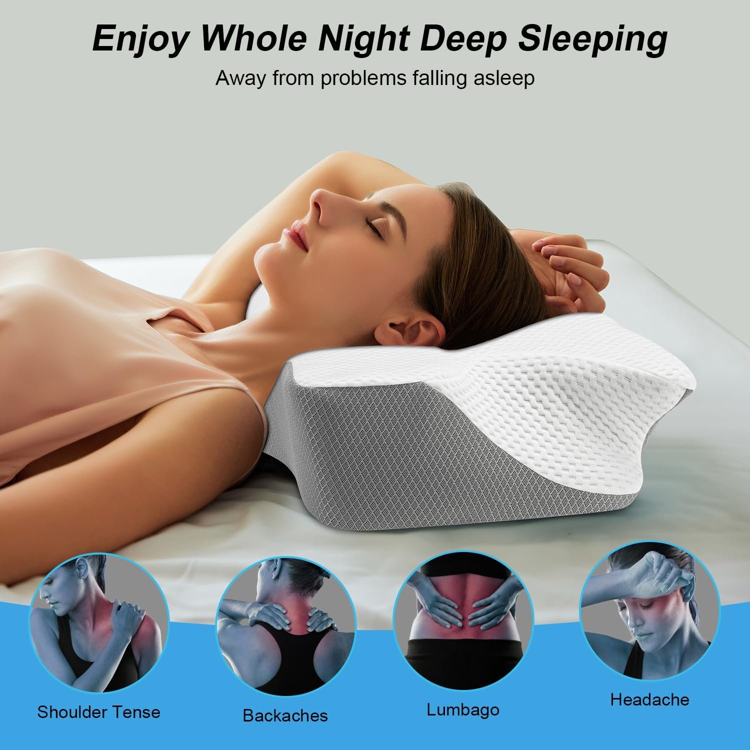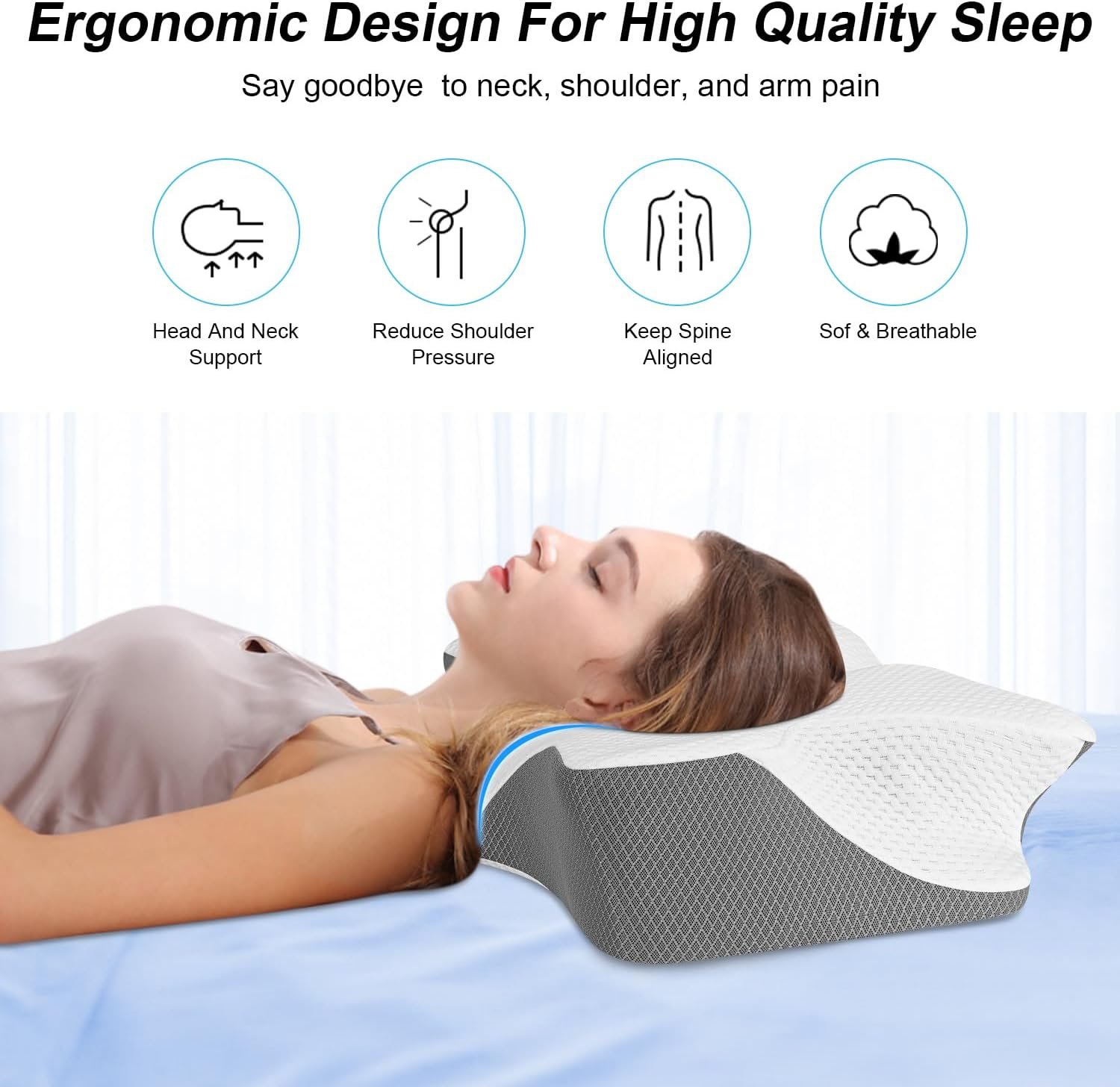 🌛【SPINAL ALIGNMENT DESIGN FOR A GOOD NIGHT】 A variety of personal health matters make getting a good night’s rest more challenging nowadays. We at Anvo spent years developing a cervical pillow for neck pain that was built to provide great alignment and support FOR YOUR BODY. Our cervical neck pillow is ergonomic designed delivers extra support to your neck, taking the pressure off your spine, giving you a good night sleep.