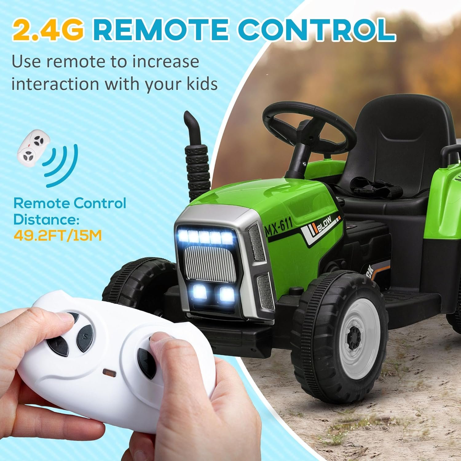 Enhanced Playtime: Our kid’s ride-on tractor has a detachable back trailer, providing space to transport toys and create a dynamic playing experience.
