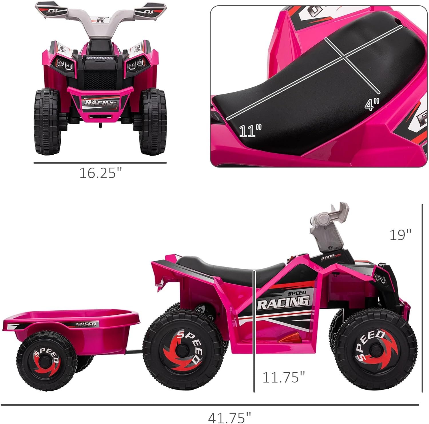 Aosom Kids ATV Quad Car with Back Trailer, 6V Kids Electric Car with Forward Backward Function, Wear-Resistant Wheels for Toddlers Ages 18-36 Months, Pink